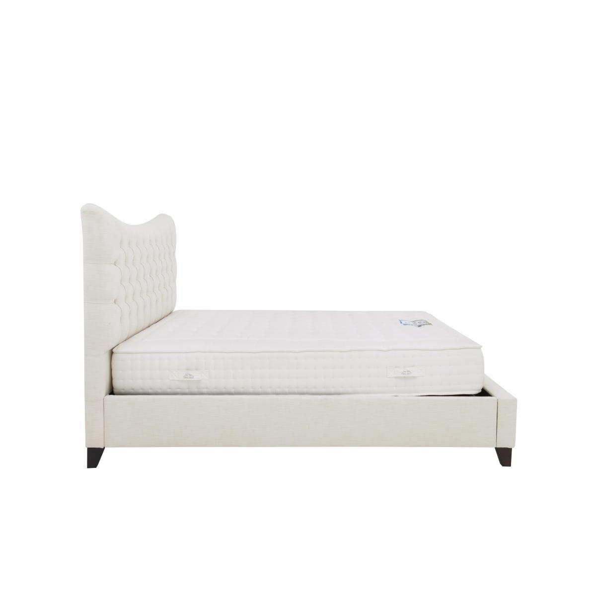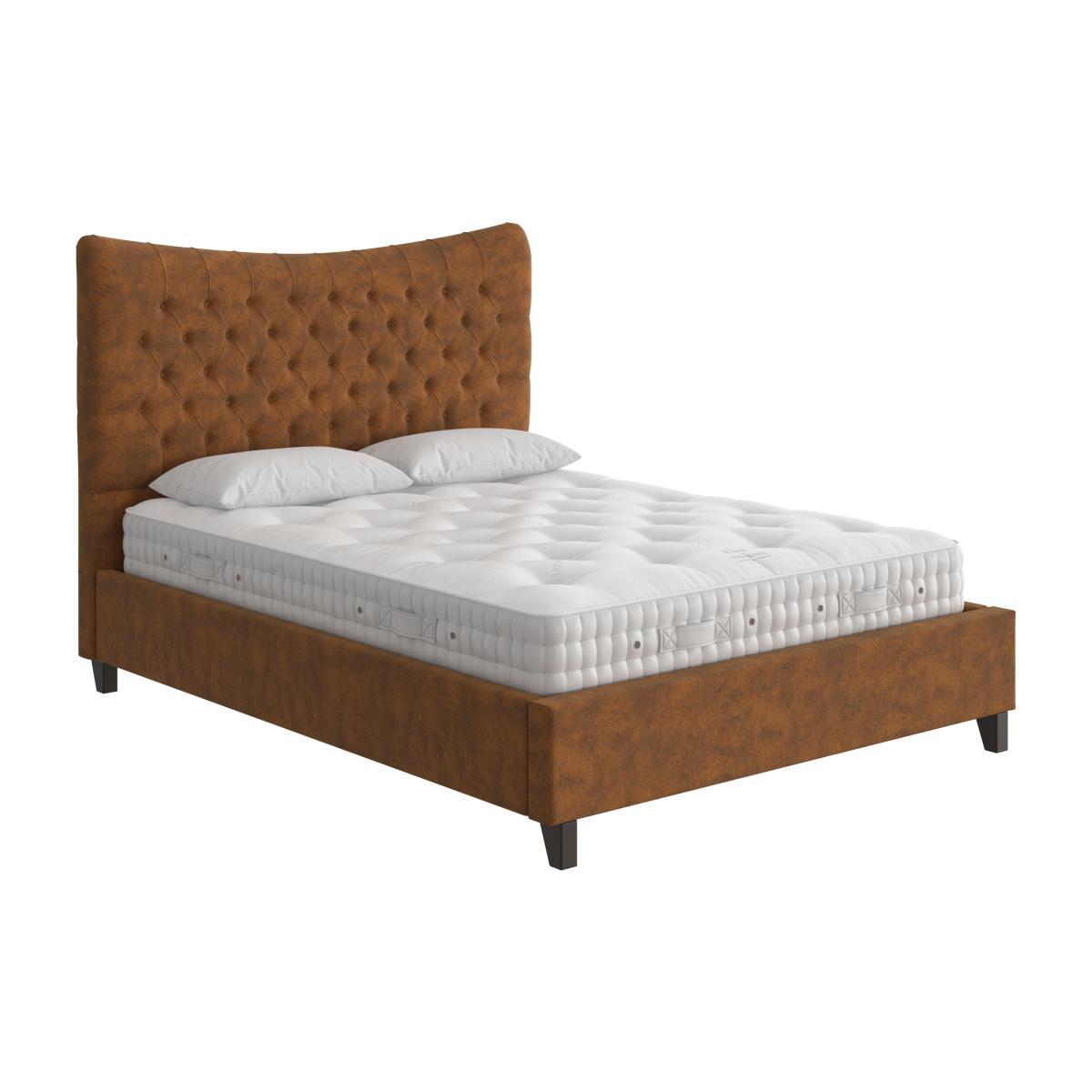 Beautifully curved and with handcrafted pleated and buttoned upholstery, the Jessie range of bedframes is the essence of contemporary luxury. Bedframes are extra wide, and designed to stylishly surround the mattress in unashamedly opulent contemporary style. Choose a static bedframe or opt for an ottoman bedframe which offers useful under bed storage – both styles are available in double, king and super king sizes and in a huge range of gorgeous fabrics and colours. Headboard comes as one single piece. The contemporary Jessie bedframe combines modern lines with traditional upholstery techniques. The result is perfection. With its curved silhouette and lavishly pleated and buttoned upholstered headboard, this gorgeous bedframe stylishly surrounds the mattress, adding extra width for a luxurious and contemporary look. And it’s so beautifully made. Both the frame and the upholstery are hand crafted, and it shows in the details. Choose from a wide range of fabrics, including velvets and wools, in an equally wide selection of colours both subtle and bright. The hand-made frame’s sprung slatted base supports any style of mattress, including pocket sprung and memory foam, and is available in double, king and super king sizes. The. British-made Jessie bedframe is part of the Jessie range which also includes an ottoman bedframe which incorporate useful concealed storage. Mattress available separately.