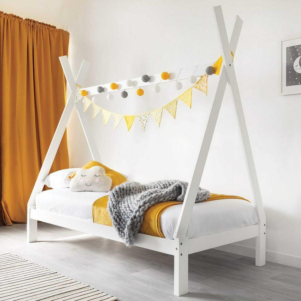 Jessie Kids White Wooden Teepee Tent Bed - White