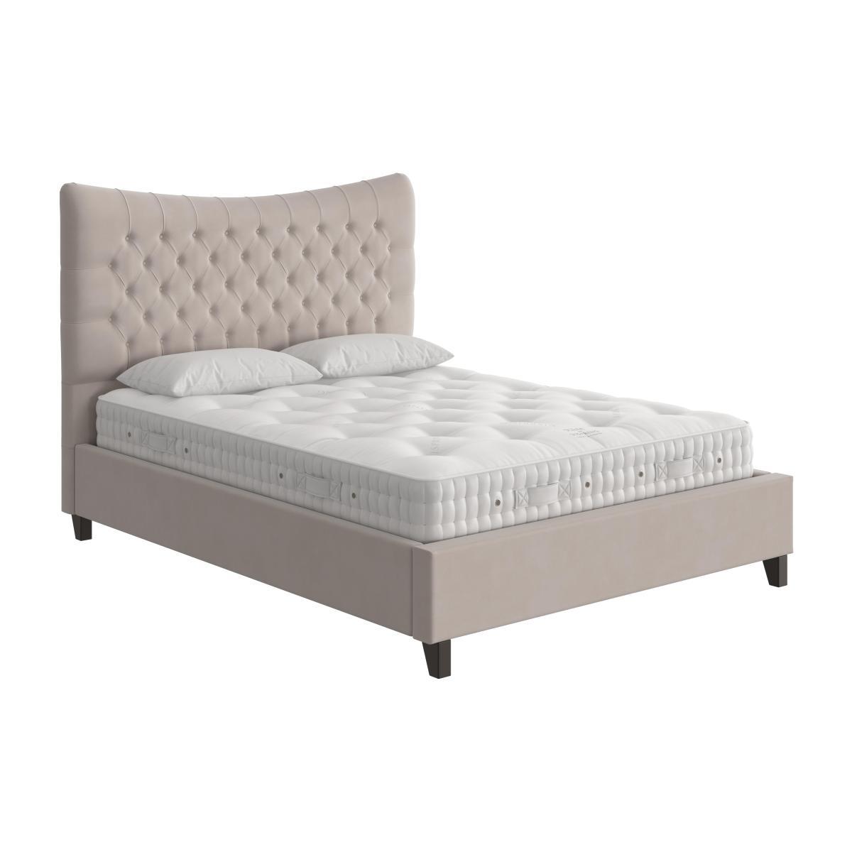 Beautifully curved and with handcrafted pleated and buttoned upholstery, the Jessie range of bedframes is the essence of contemporary luxury. Bedframes are extra wide, and designed to stylishly surround the mattress in unashamedly opulent contemporary style. Choose a static bedframe or opt for an ottoman bedframe which offers useful under bed storage – both styles are available in double, king and super king sizes and in a huge range of gorgeous fabrics and colours. Headboard comes as one single piece. The Jessie ottoman bedframe offers luxurious contemporary style plus the added benefit of hidden storage. Upholstered by hand, the curved headend has gorgeous pleating and buttoning – a traditional detail that here has quite the modern look, thanks to the bedframe’s overall contemporary aesthetic. It’s extra wide, providing a stylish and substantial border for your mattress – an effect that’s often seen in the beds of luxury boutique hotels. Simply lift the sprung slatted base to find a spacious compartment that’s the perfect place to store extra bedding. Upholstery is available in a wide choice of plush, woven and velvet fabrics and in a whole spectrum of colours, from subtle neutrals to vivid brights. The Jessie ottoman bedframe is part of the Jessie range, is available in double, king and super king sizes and is suitable for any type of mattress. Mattress available separately.