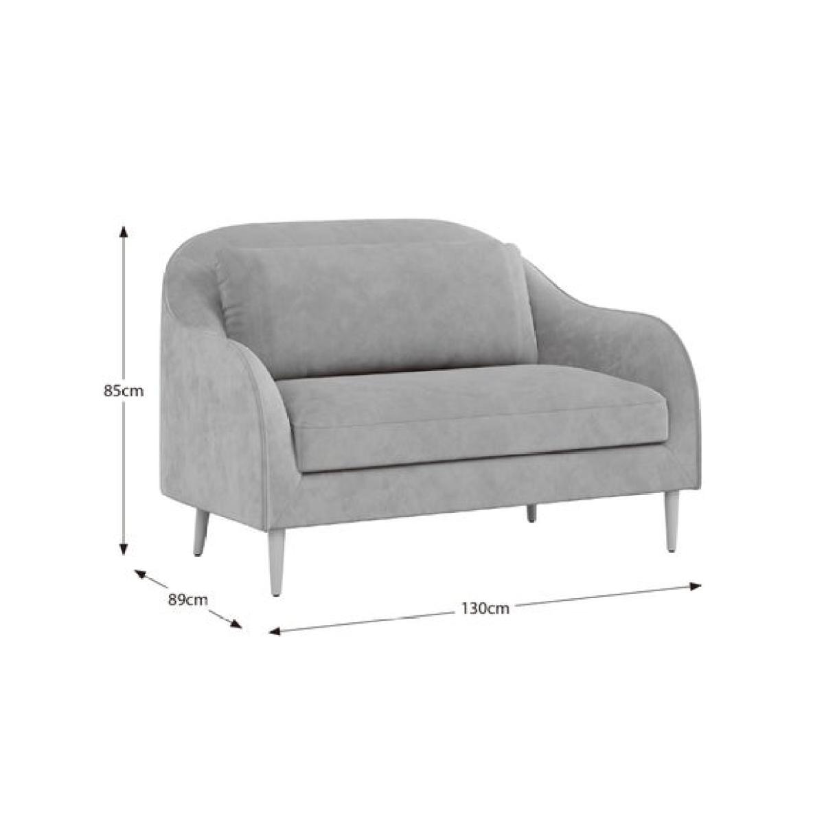 * Space saving modern sofa * Soft upholstery * Curved back * Light wood legs Designed for intimate spaces and cosy corners, this 2 seater sofa offers the same refined style and comfort as its larger counterpart. The velvet upholstery provides a rich, tactile experience, while the gently curved backrest adds a touch of elegance and visual softness. Its compact footprint makes it ideal for apartments, reading nooks, or as a stylish addition to a bedroom or office.