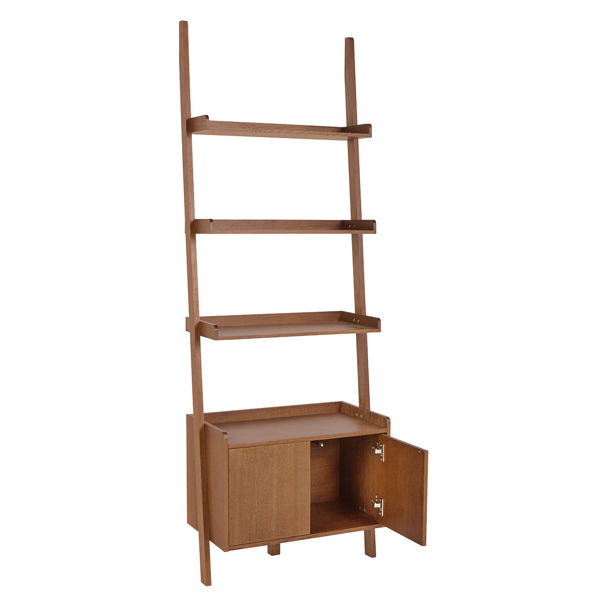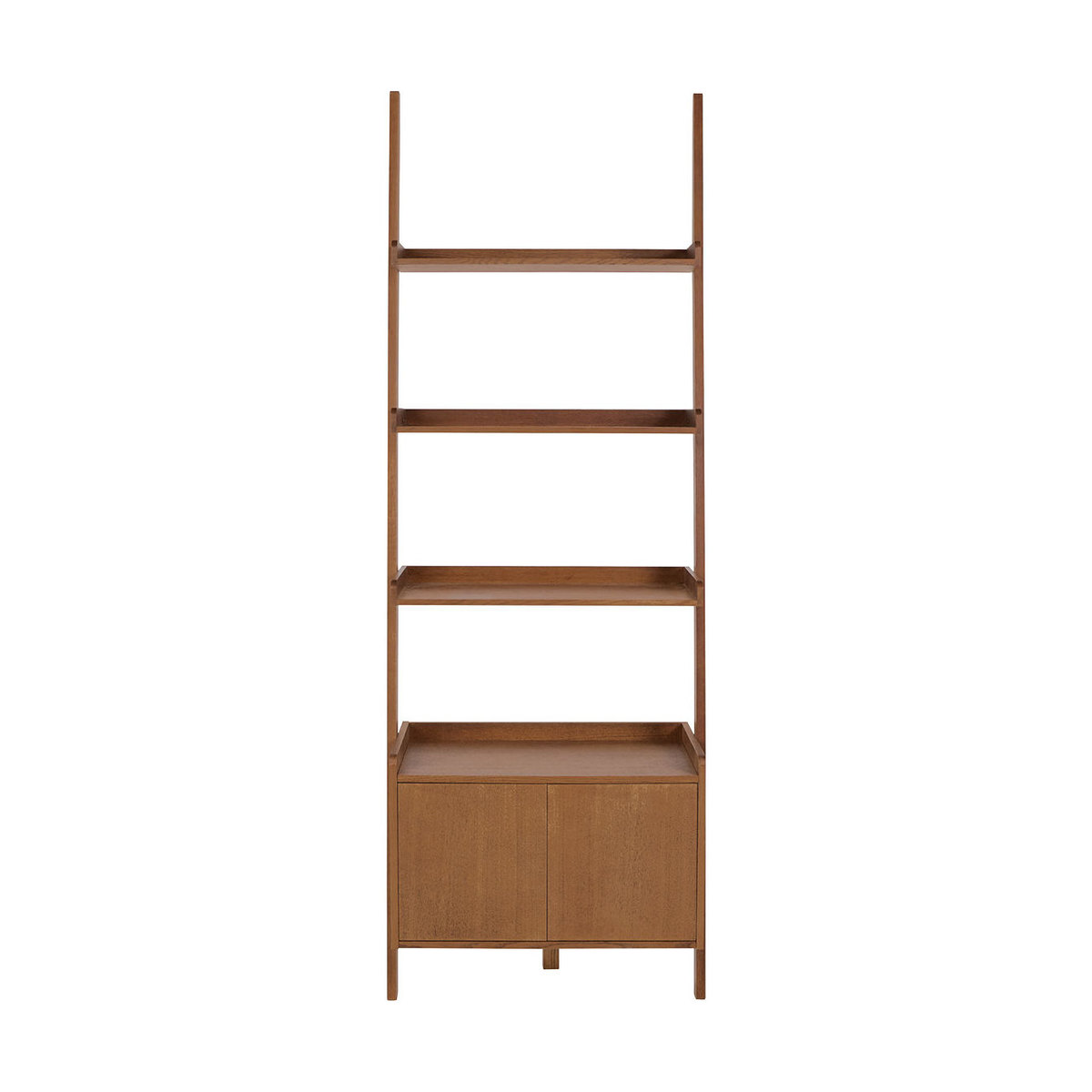 The versatile Jessie walnut leaning bookcase with storage provides generous storage and display space for books, decorative objects and accessories. Created in the Habitat design studio, Jessie has crisp lines with solid oak uprights and a walnut stained finish. A bottom storage cupboard with push close doors provides ample space for items you need close at hand but want to keep hidden away. Jessie is also available in both a wide and narrow bookcase which can be paired with the storage bookshelf for a modular look.