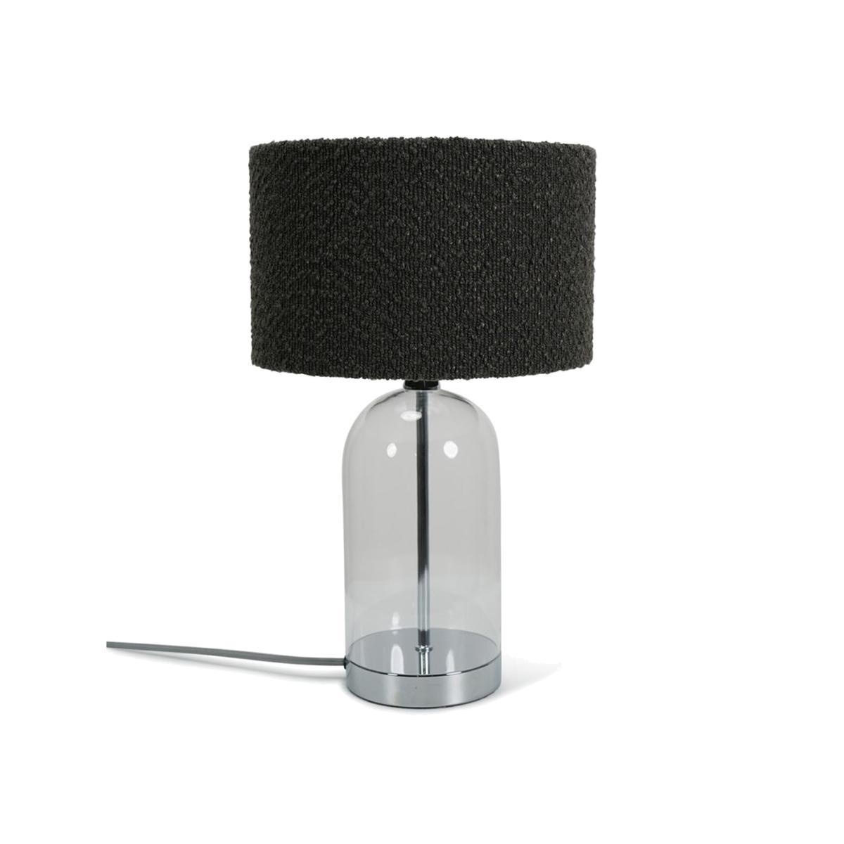 Add a timeless addition to your home with this stunning silver table lamp. Featuring a glass base with a simple, modern design that complements any decor. Whether your style is a vintage, or more sleek and minimalist, this lamp will fit perfectly into any room in your home. Complete with a boucle lampshade. The natural texture of the fabric adds warmth and depth to your decor.