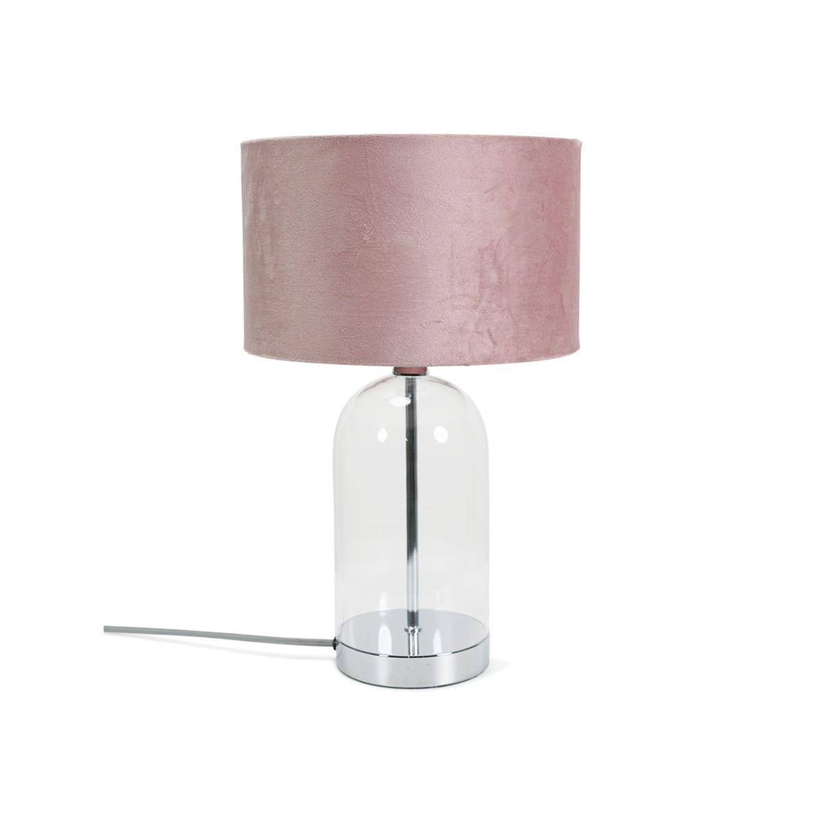 Jessy Glass Table Lamp - Silver / Pink Velvet Shade