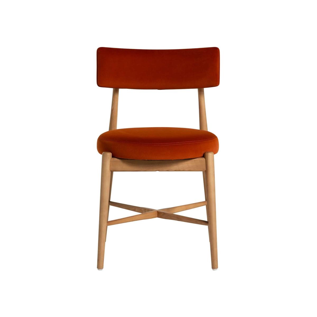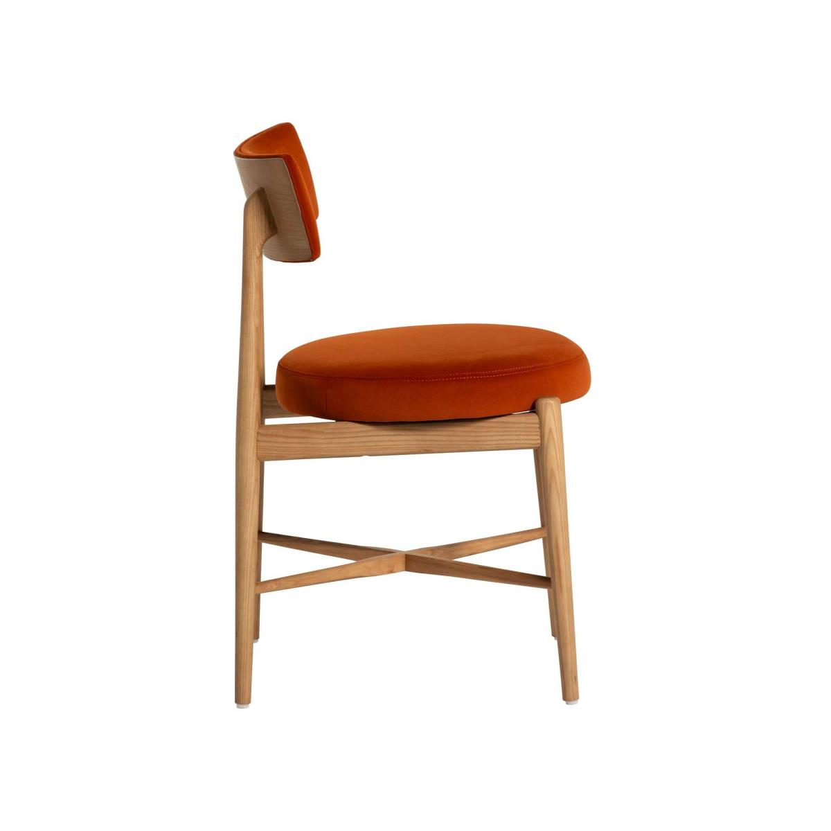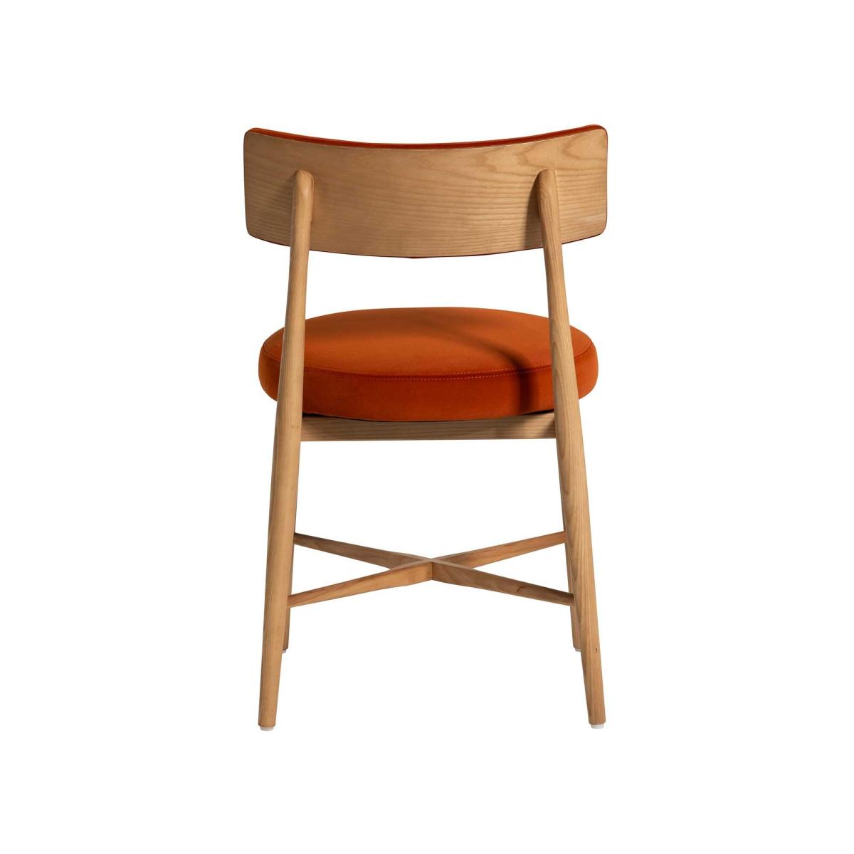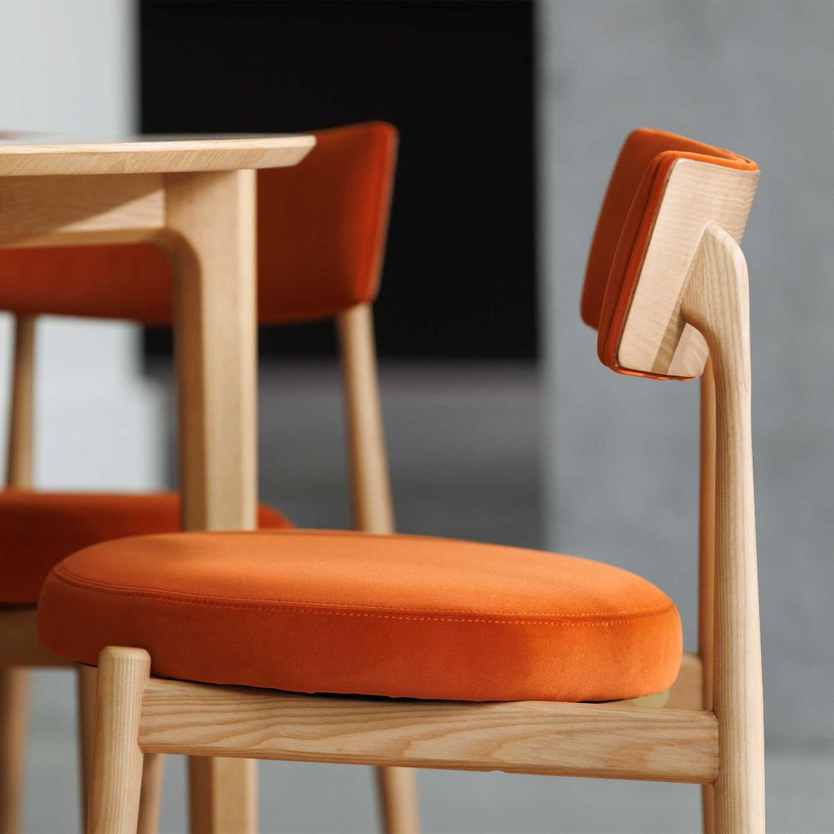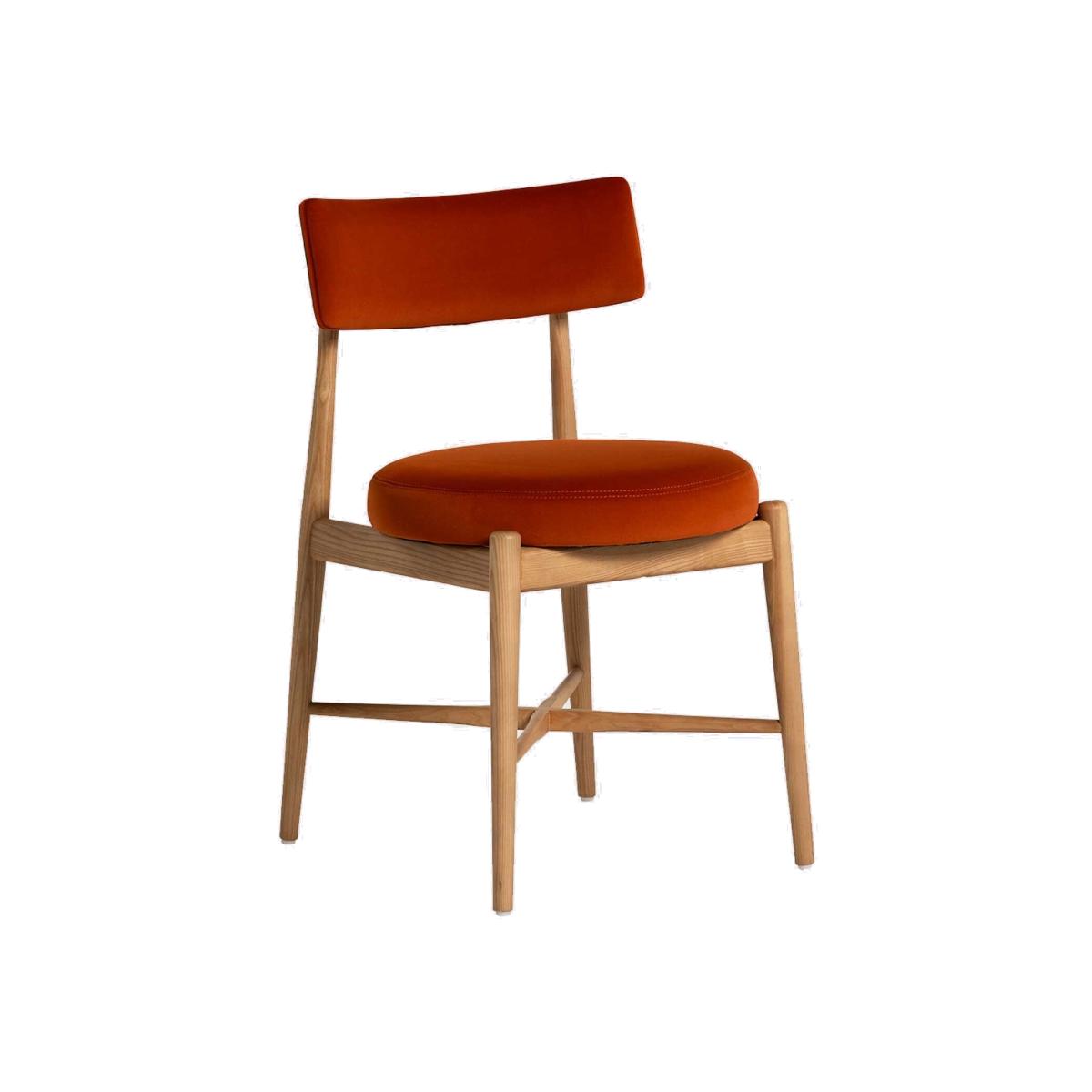 This dining chair features a strong ash wood frame, valued for its durability and natural grain, making it a stylish and sturdy choice for any dining space. The seat is cushioned with high-density foam for excellent comfort and support, while the vibrant orange fabric upholstery adds a contemporary flair. Designed to combine functionality and aesthetics, this chair brings a modern touch to your dining room while ensuring long-lasting use and comfort, perfectly suited for both everyday meals and special occasions.