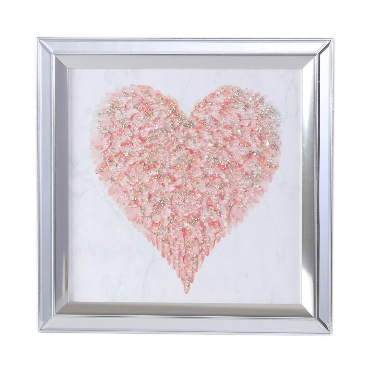 With a sweet and romantic air, this Jewel Embellished Heart Framed Wall Art is a beautiful way to decorate. Featuring a gorgeous heart-shaped design with silver embellishments for a luxurious look, it is set in a coordinating silver frame to bring the look together. Ideal for the living room, hallway, or bedroom, it's great for any home decor style.