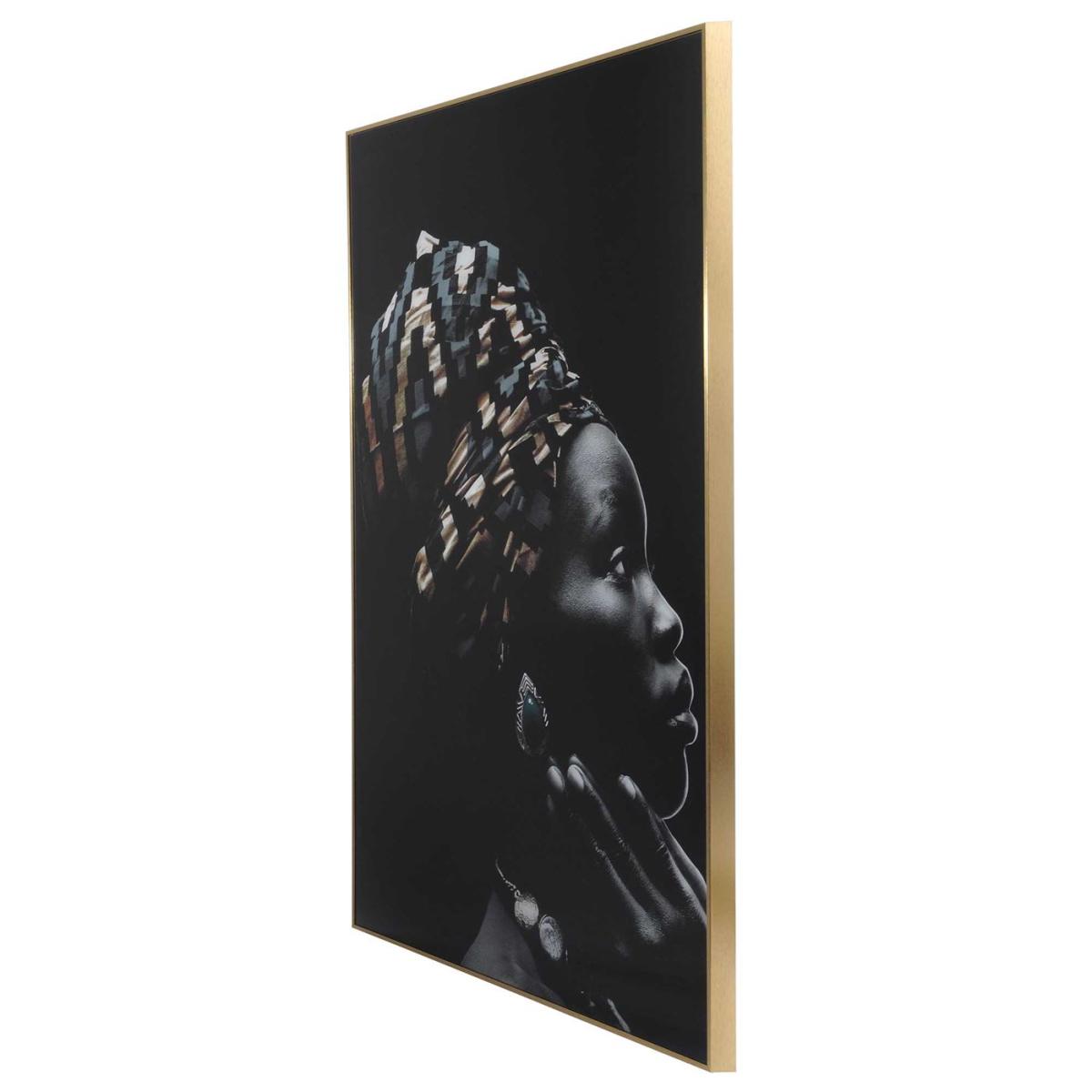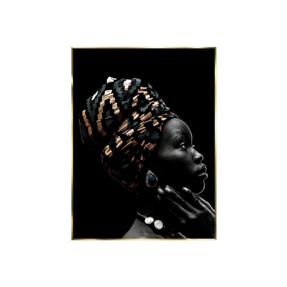 I love this portrait print for adding a striking focal point to both modern and eclectic interiors. Its bold black background makes the colours and details pop, creating a sophisticated yet contemporary vibe. It works particularly well in minimalist schemes where it can serve as an eye-catching statement piece, or in interiors with rich textures and layered textiles for a touch of cultural warmth. For styling, consider pairing it with sleek frames or mounting it in a gallery wall with other artwork or photographs to add interest without overcrowding. It’s versatile enough to hang in living rooms, bedrooms, or even hallways, making it a distinctive and visually impactful addition to a variety of spaces.