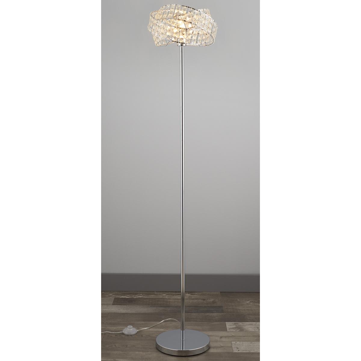 Create a glamorous focal point in any room with this stunning Jewelled Twist Floor Lamp, featuring an elegant stem finished in chrome for an element of contemporary design. Three interlocked rings of clear jewels encircle the fitting, allowing the bright light to flow through each one and glistening in a stunning display. A matching table lamp and pendant are available to complete your statement home lighting collection.