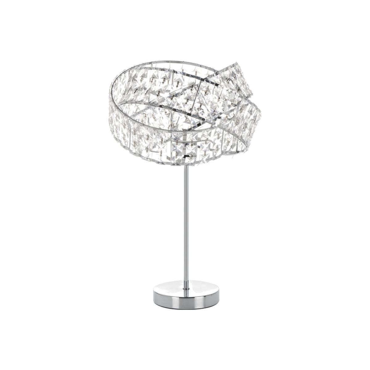 This breathtaking Jewelled Twisted Table Lamp is fashioned from three interlocking loops of metal and clear crystals that encircle your bulb and glisten in the light. Stood atop a sleek chrome stand and base, this gorgeous lighting solution will elevate the aesthetic of your bedroom or living space and cast stunning patterns around your room.