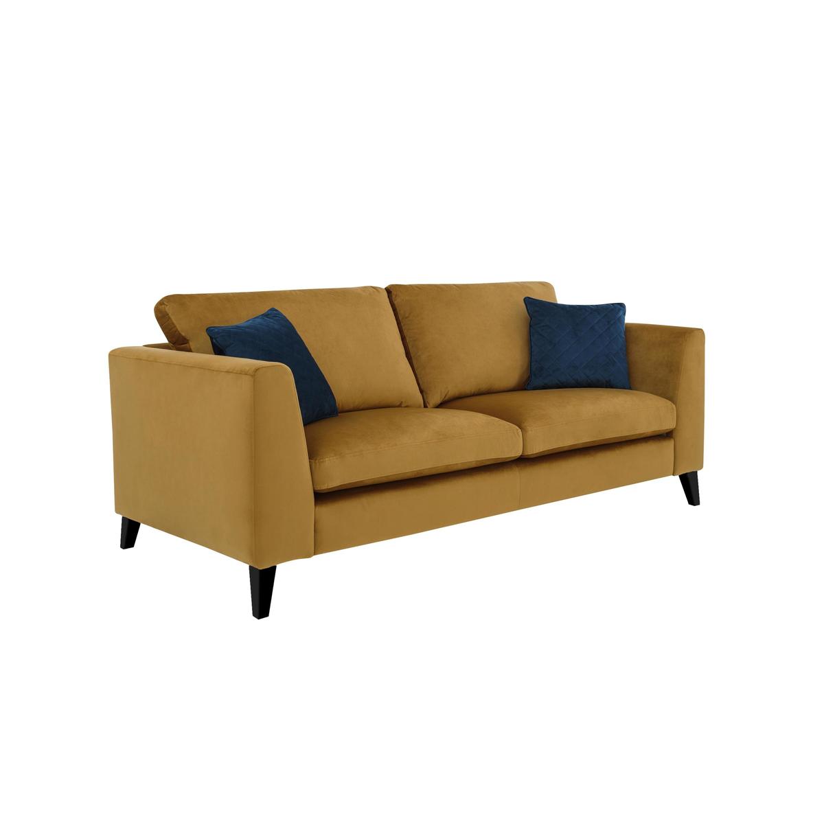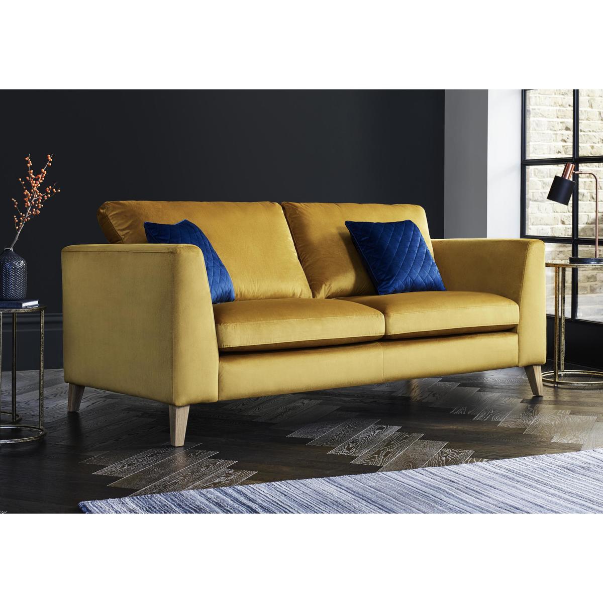 Stretch out and relax in chic, luxurious style on the Jewels four seater sofa. Roomy and contemporary, it’s upholstered in soft touch velvet fabric in a choice of sophisticated neutral shades or rich, jewel-like colours. For more colour choices, please call 0800 804 8879. The Jewels large sofa has a simple, sophisticated design inspired by mid-century style, with slim arms and fashionably tapered wood legs in a choice of finishes. And, as the arms and legs are removable, it’s easy to deliver into your home. This great value, handcrafted sofa does not compromise on quality. It has sprung seats, and the high density elastic foam with fibre wrap seat cushions keep their shape for longer. The back cushions are luxury fibre filled. Two scatter cushions in diamond quilted velvet fabric are included. The Jewels four seater sofa is part of the Jewels range, exclusive to Furniture Village. Top tip: Some fabrics can show wear on areas of more use or in direct sunlight. To keep your fabric upholstery looking fresh, plump, turn and rotate seat and back cushions regularly if possible. Please read our upholstery care guide for more advice on caring for your fabric sofa or chair.