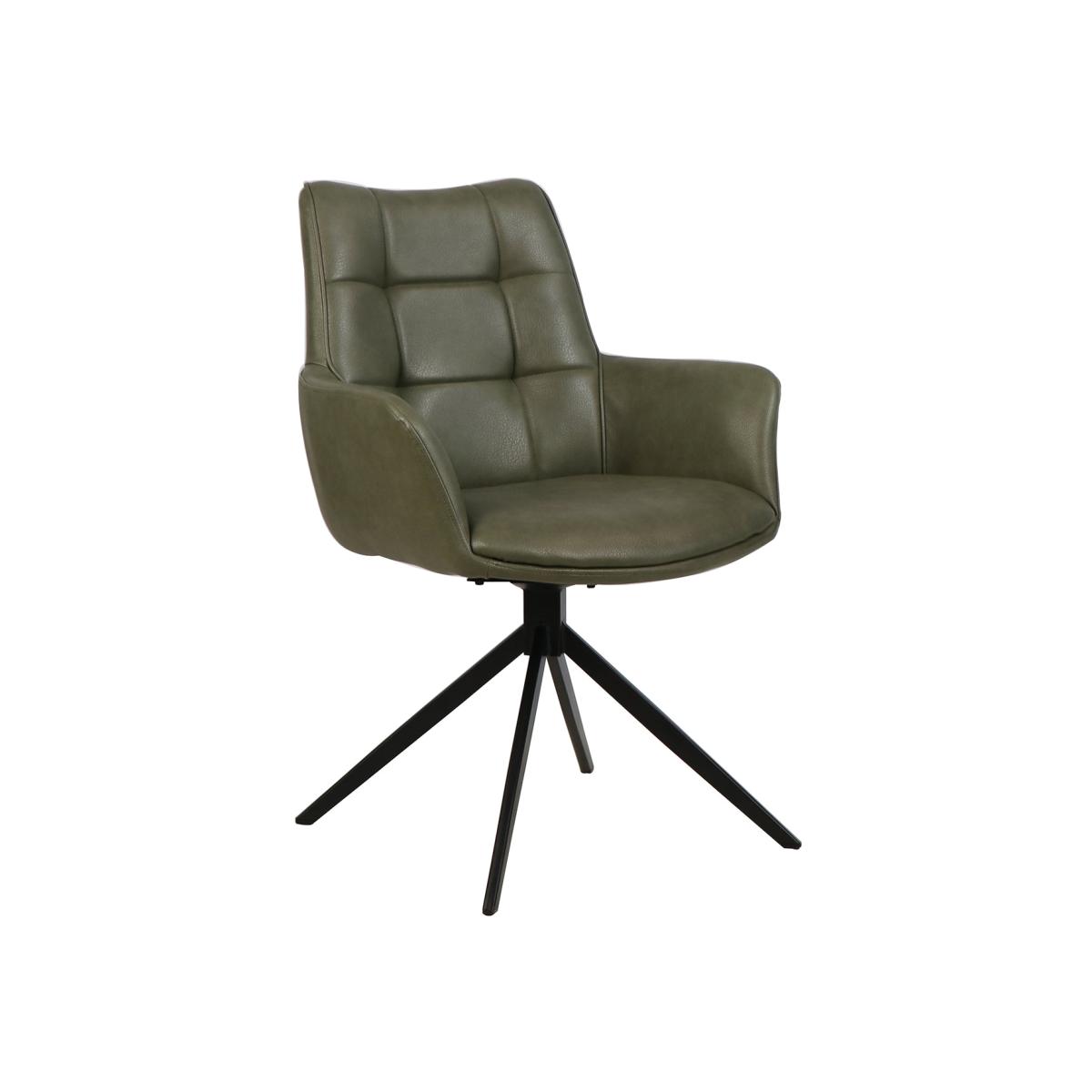 The Jill Dining Chair is a very comfortable and stylish dining chair with arms. The chair features a soft quilted faux leather upholstery, and best of all, it swivels. The swivel function is sprung so the chair returns to it's original position making it easier to tidy your dining space and keep those chairs in line. Supported by a black powder coated metal star base, the Jill Dining Chair is destined to be a loved addition to any home. Available in four great colour choices.