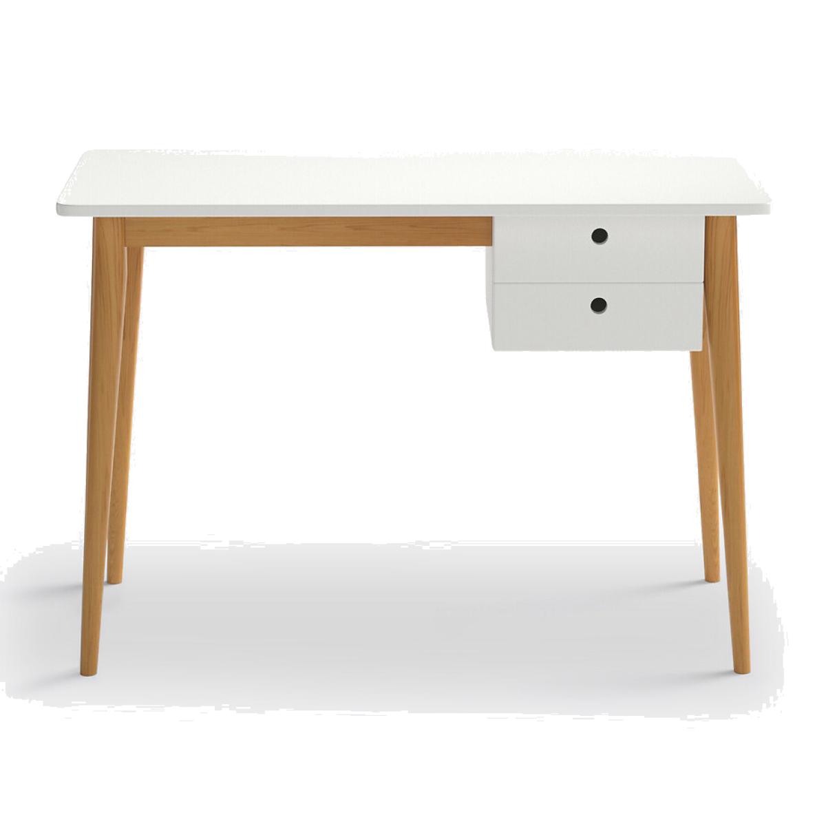 Jimi Scandinavian-style child's desk with solid pine legs. The Scandinavian styling creates an unusual and unique touch, meaning it fits perfectly into a child's bedroom. Product Details • 1 drawer • Solid pine tapered legs • Front and top in nitrocellulose lacquered MDF • Solid pine base • FSC® Mixed certified wood • Water-based varnish (or paint) finishDimensions. Total: • Length: 106cm • Height: 73cm • Depth: 50cm. Usable space • L23 x H15 x D38cmDelivery:. Assembly required. Available for home delivery. Note! Please check that all access points are large enough to accommodate your delivery (doors, stairs, lifts). • WOOD FROM SUSTAINABLY MANAGED FORESTS. FSC® certified wood comes from forests that are environmentally, socially and economically well managed. • WOOD FROM MORE SUSTAINABLY MANAGED FORESTS AND CONTROLLED SOURCES. FSC® Mix wood contains at least 70% FSC® certified and/or recycled wood, the remainder being FSC® controlled wood. Parcel Dimensions1 parcel • L120 x H57 x D19cm • 19kg