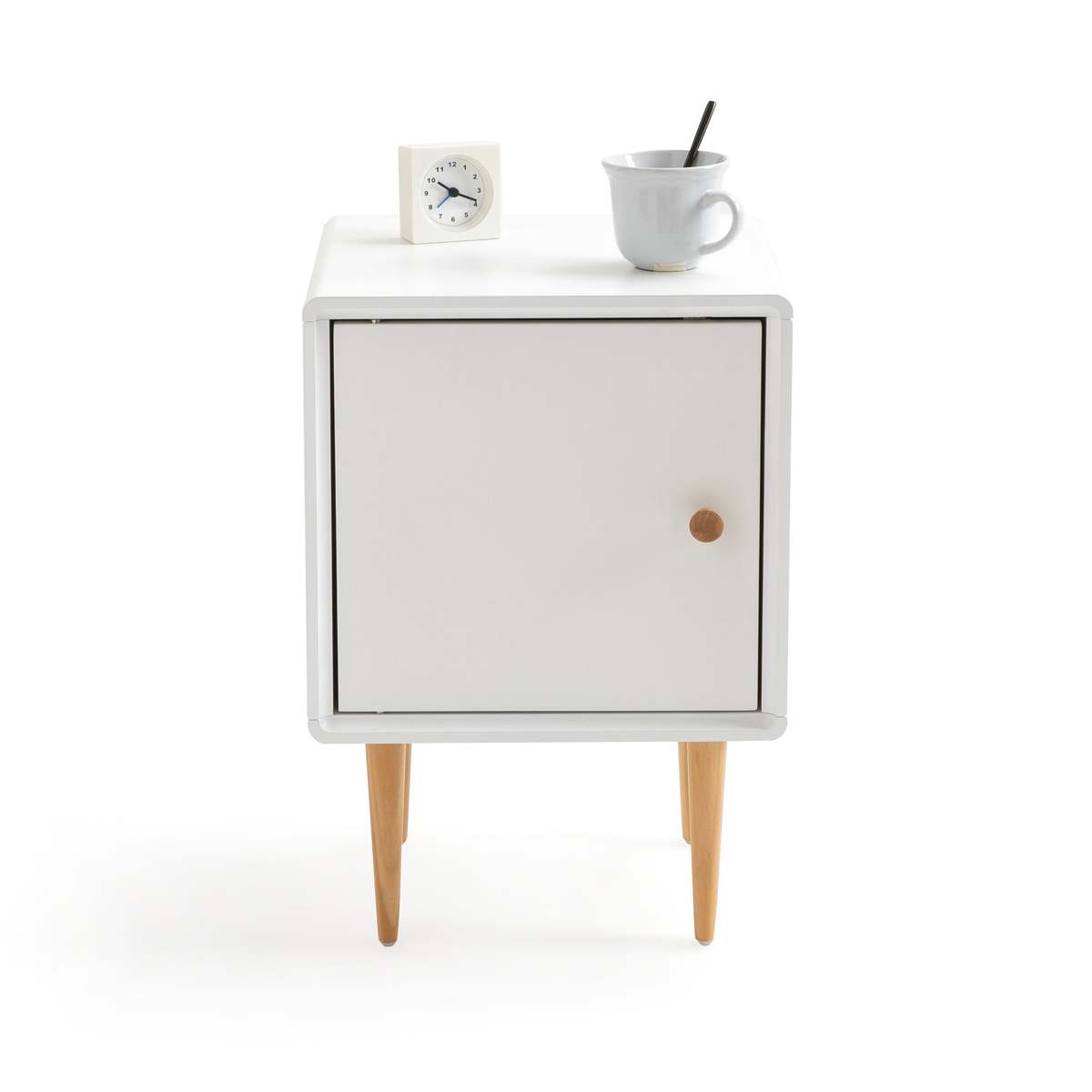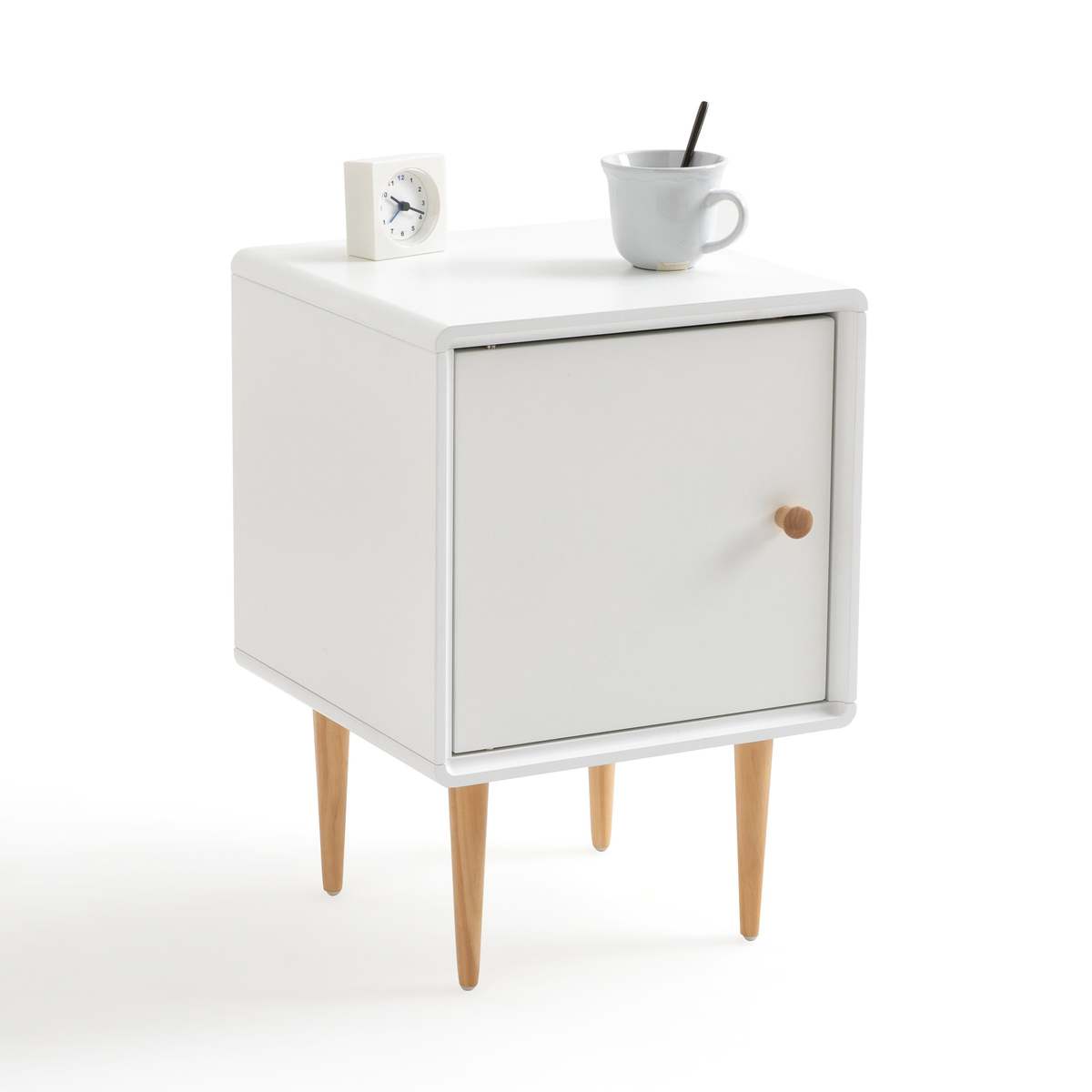 I love this bedside table for its clean-lined, minimalist look, and the reversible door adds a functional twist that makes it versatile in various interiors. It works particularly well in Scandi or modern spaces, where its simple design complements a neutral colour palette, but it can also add a subtle touch of retro charm when styled with vintage accessories. Practical styling tips include keeping the top surface clutter-free with a small lamp or clock and using the inside storage for essentials like books or skincare. The wooden leg detail softens the overall look, making it an adaptable piece that balances style and practicality effortlessly.