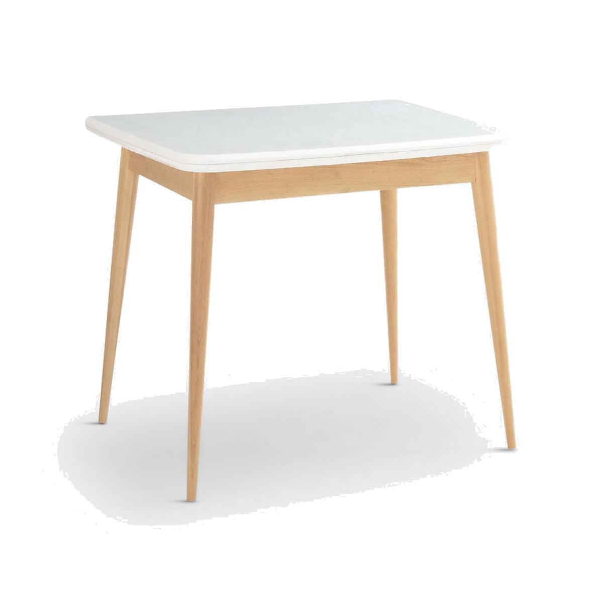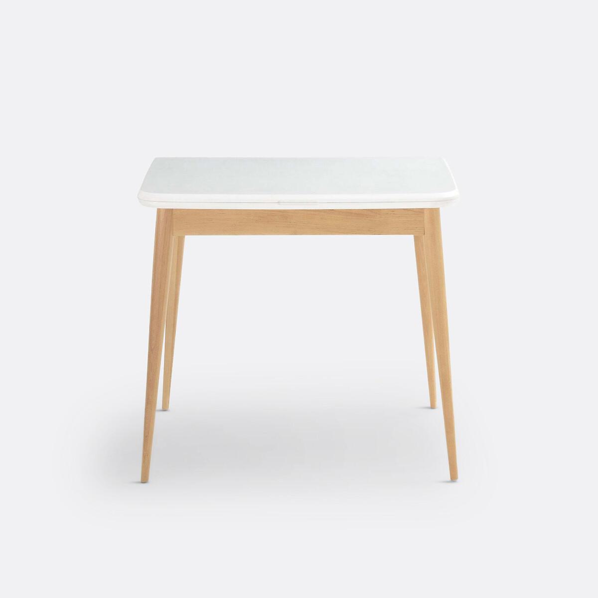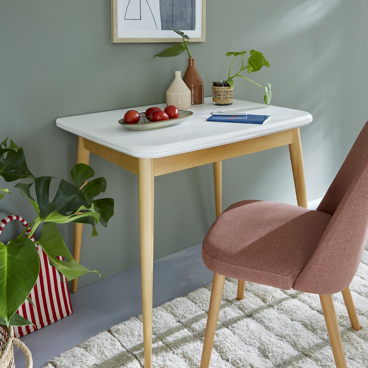 Practical and contemporary, the Jimi dining table has a neo-retro style that looks right at home in a range of interiors. When extended, it seats up to six people, while four can sit comfortably around it in its smaller format. Product Details • Extension shelf • Tapered legs • Seats 2-6 people • Bevelled tray in white lacquered MDF, polyurethane varnish finish • Solid birch legs, nitrocellulose varnish finish • Invisible platform locking system Discover the full Jimi collection online. Dimensions • Length: 65/130cm • Height 75.8cm • Depth: 85cm. Home delivery:Your Jimi table is a self-assembly item. It will be delivered to your door!Note! Please check that all access points are large enough to accommodate your delivery (doors, stairs, lifts). • WOOD FROM SUSTAINABLY MANAGED FORESTS. FSC® certified wood comes from forests that are environmentally, socially and economically well managed. Parcel Dimensions1 parcel • 94 x 15 x 73cm • 25kg