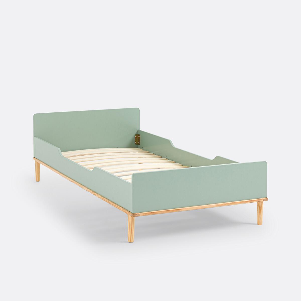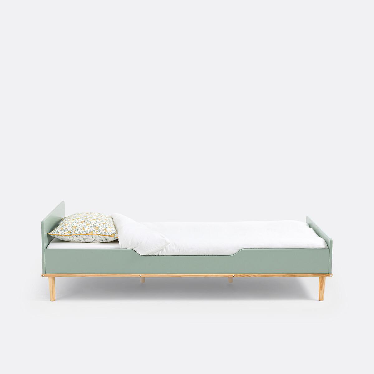 With its classic Scandinavian pairing of white and natural wood and simple clean lines, the Jimi bed is perfectly suited to children's bedrooms. Product Details • In lacquered MDF with NC finish • Frame and legs in solid pine. • Sleeping area 90 x 190cm • Supplied with slatted baseDimensions. Total: • Width 94cm • Length 196 cm • Height: 54.3cm. Delivery: • Assembly required. Available for home delivery. Note! Please check that all access points are large enough to accommodate your delivery (doors, stairs, lifts).1 parcel204 x 44 x 16cm. Weight: 30kg