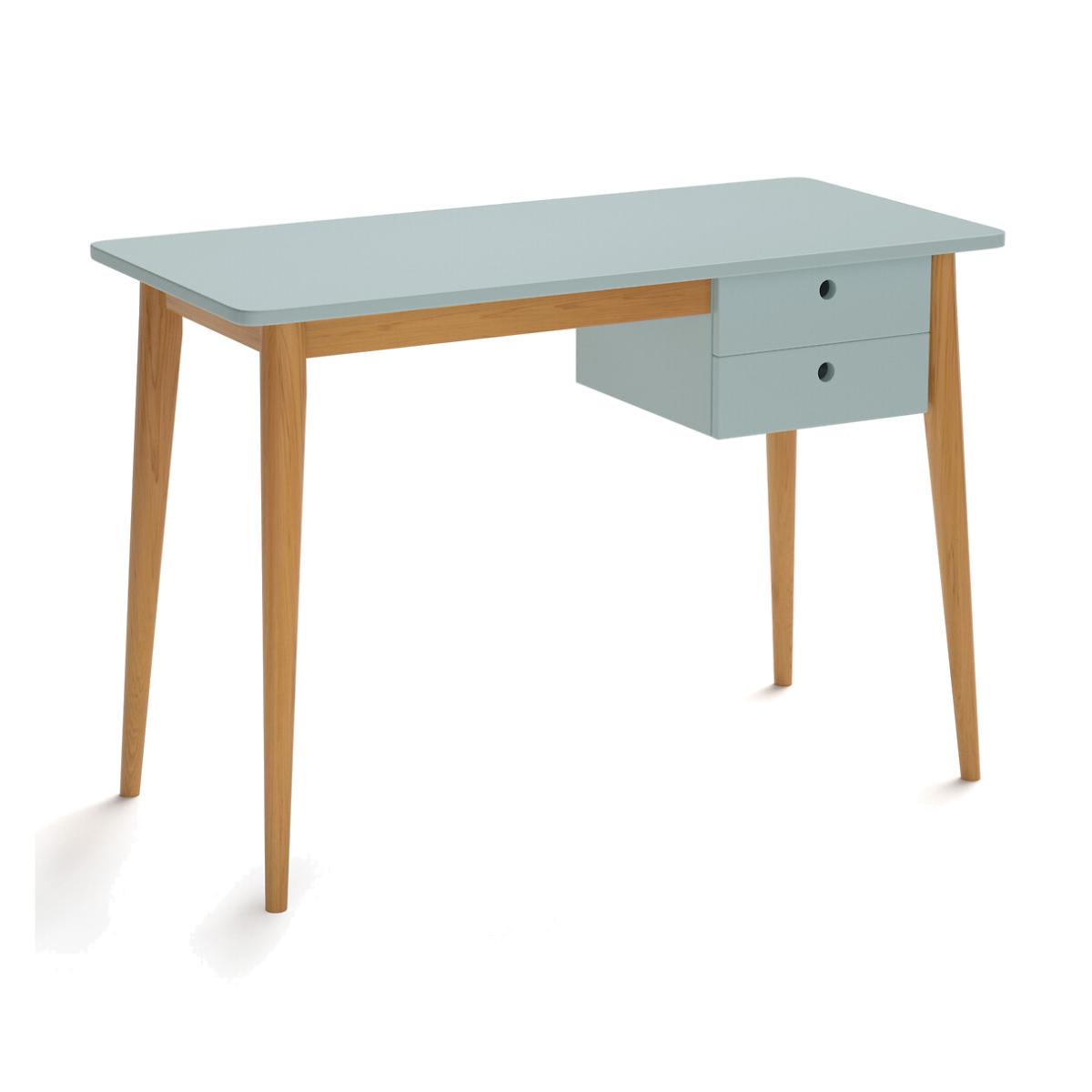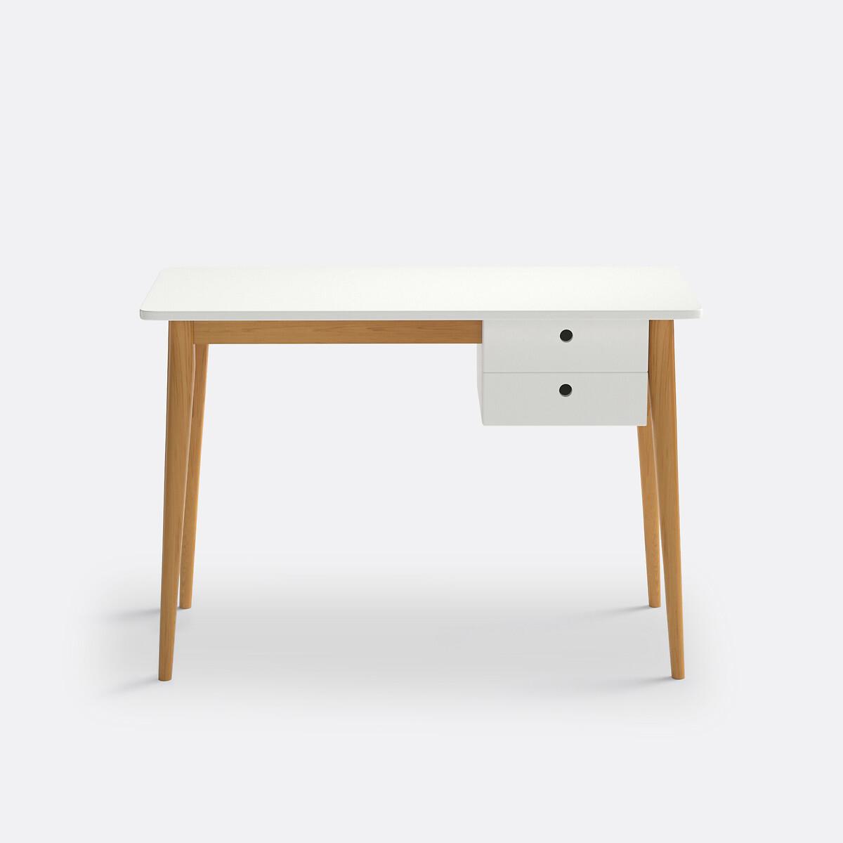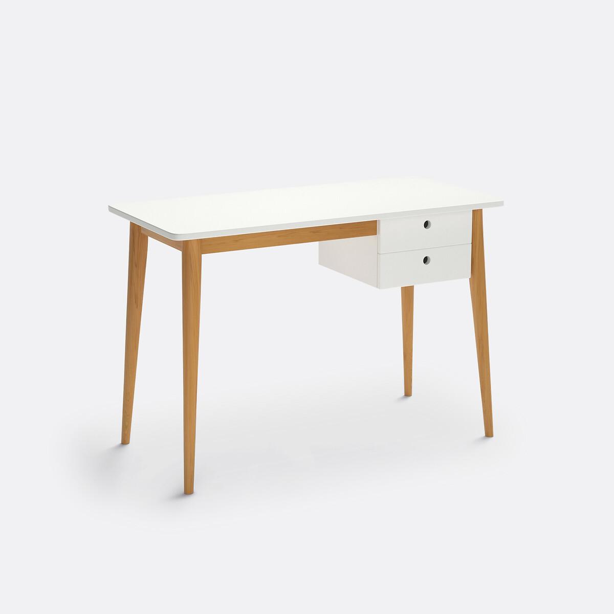 Jimi Scandinavian-style child's desk with solid pine legs. The Scandinavian styling creates an unusual and unique touch, meaning it fits perfectly into a child's bedroom. Product Details • 1 drawer • Solid pine tapered legs • Front and top in nitrocellulose lacquered MDF • Solid pine base • FSC® Mixed certified wood • Water-based varnish (or paint) finishDimensions. Total: • Length: 106cm • Height: 73cm • Depth: 50cm. Usable space • L23 x H15 x D38cmDelivery:. Assembly required. Available for home delivery. Note! Please check that all access points are large enough to accommodate your delivery (doors, stairs, lifts). • WOOD FROM SUSTAINABLY MANAGED FORESTS. FSC® certified wood comes from forests that are environmentally, socially and economically well managed. • WOOD FROM MORE SUSTAINABLY MANAGED FORESTS AND CONTROLLED SOURCES. FSC® Mix wood contains at least 70% FSC® certified and/or recycled wood, the remainder being FSC® controlled wood. Parcel Dimensions1 parcel • L120 x H57 x D19cm • 19kg