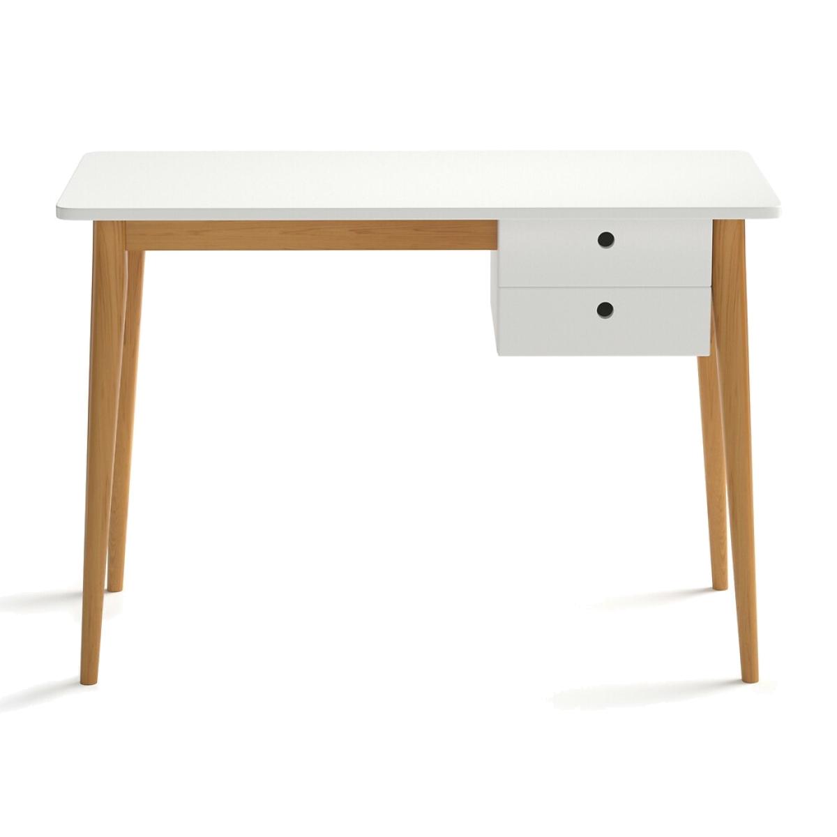 Jimi Scandinavian-style child's desk with solid pine legs. The Scandinavian styling creates an unusual and unique touch, meaning it fits perfectly into a child's bedroom. Product Details • 1 drawer • Solid pine tapered legs • Front and top in nitrocellulose lacquered MDF • Solid pine base • FSC® Mixed certified wood • Water-based varnish (or paint) finishDimensions. Total: • Length: 106cm • Height: 73cm • Depth: 50cm. Usable space • L23 x H15 x D38cmDelivery:. Assembly required. Available for home delivery. Note! Please check that all access points are large enough to accommodate your delivery (doors, stairs, lifts). • WOOD FROM SUSTAINABLY MANAGED FORESTS. FSC® certified wood comes from forests that are environmentally, socially and economically well managed. • WOOD FROM MORE SUSTAINABLY MANAGED FORESTS AND CONTROLLED SOURCES. FSC® Mix wood contains at least 70% FSC® certified and/or recycled wood, the remainder being FSC® controlled wood. Parcel Dimensions1 parcel • L120 x H57 x D19cm • 19kg