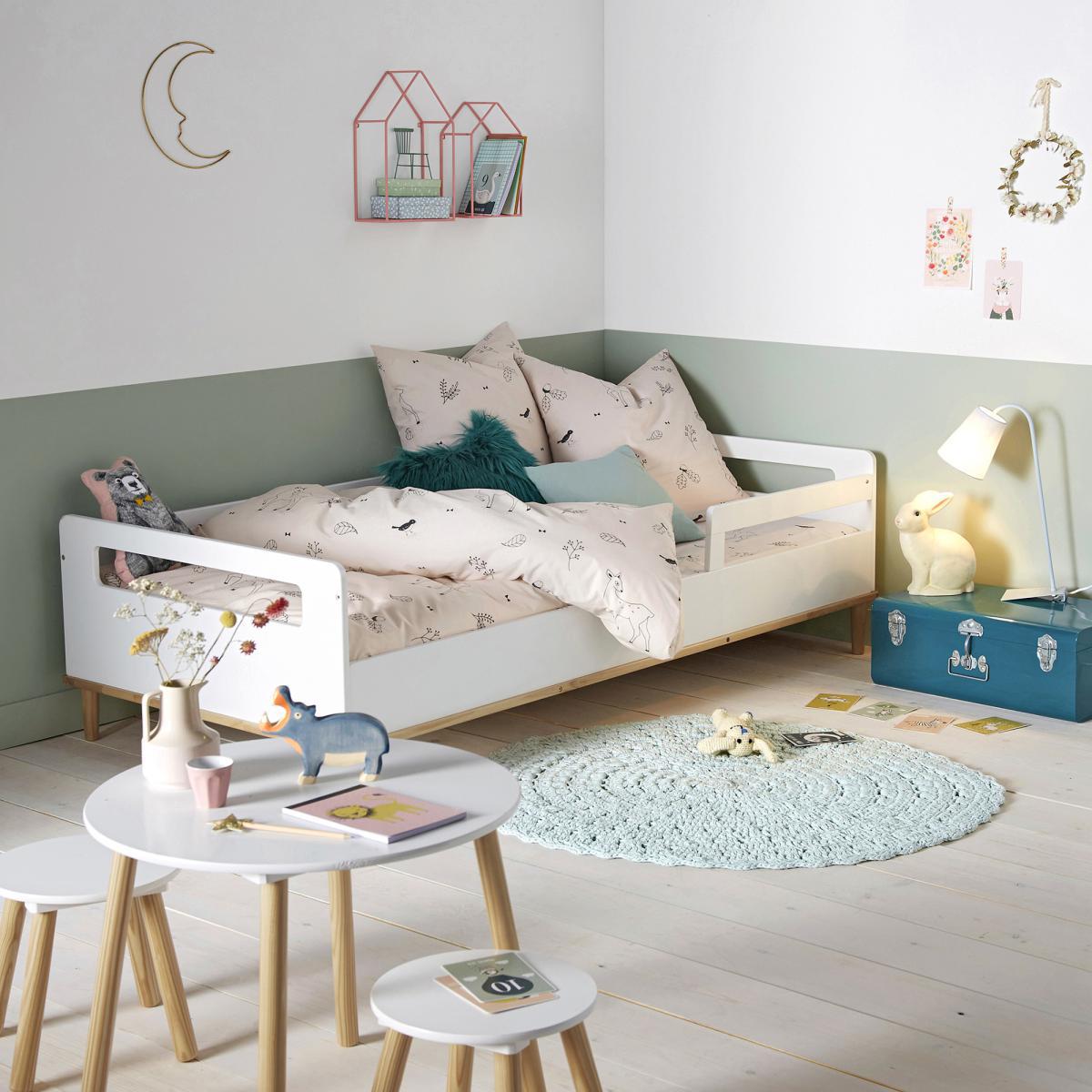 I love the Jimi Child's sofa bed for its practicality and clean, understated design, making it a versatile addition to any child's room. Its white finish combined with wooden legs lends a fresh, Scandinavian-inspired look that can easily be styled with colourful or patterned bedding for a playful touch. It's perfect for interiors that lean towards minimalist or modern aesthetics, but also works well in more vibrant, eclectic spaces. Practical styling tips include using tender-toned bedding or even themed covers to suit the child's personality, and adding soft cushions or a playful throw to make it inviting. This piece not only functions as a cosy bed but can double up as a seating area during the day, making it a smart choice for small rooms where space efficiency is key.
