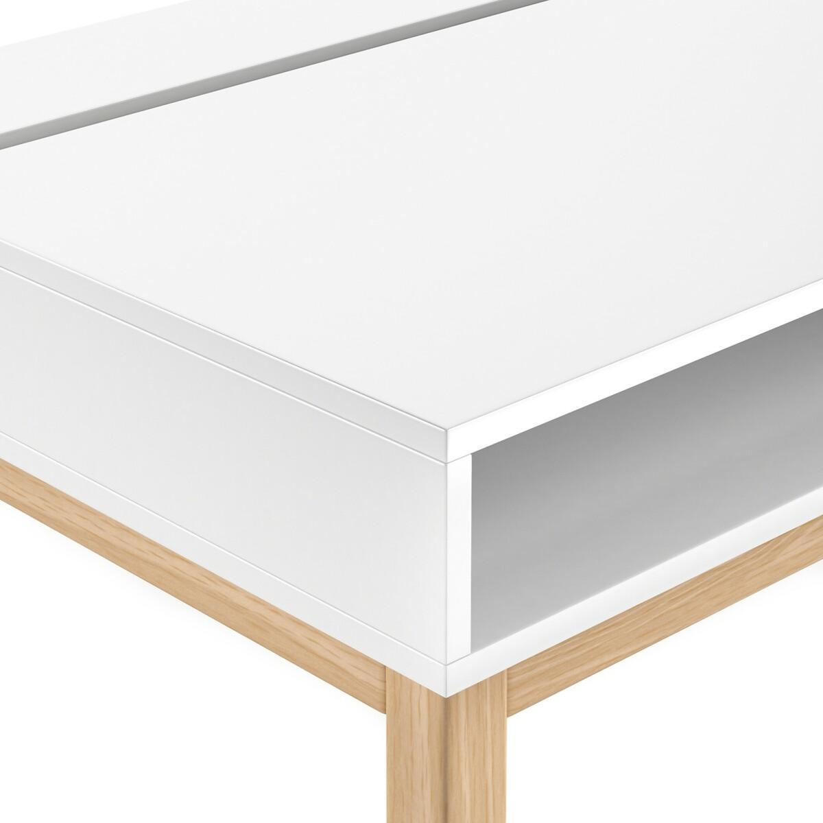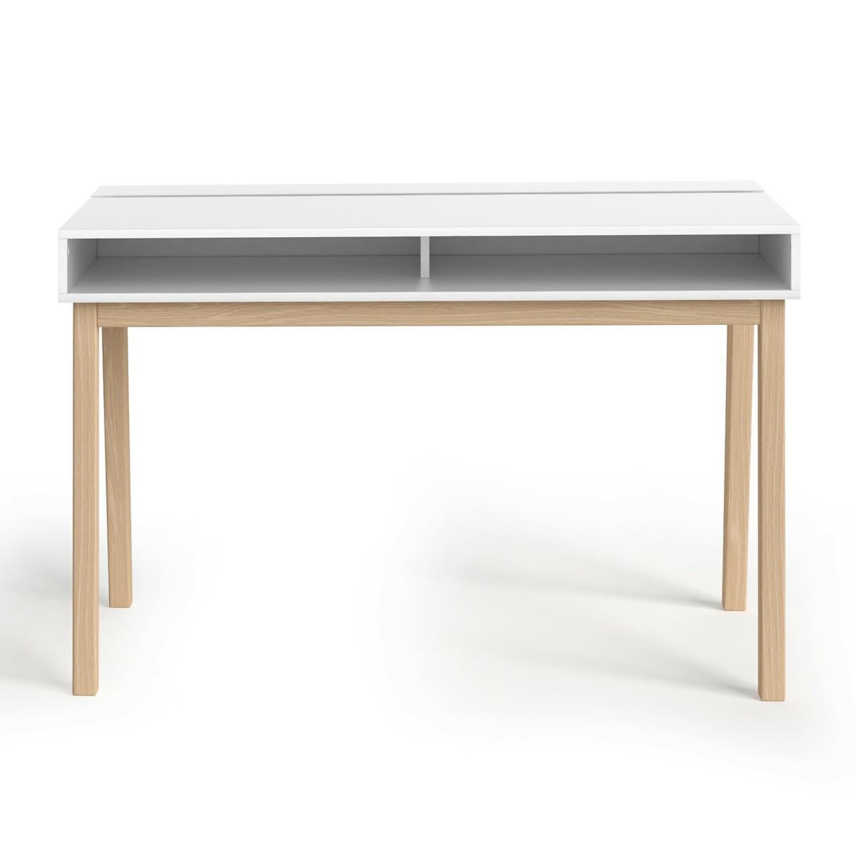 I love this desk for its clean, contemporary look that effortlessly fits both modern and minimalist interiors. Its understated design makes it versatile-great in home offices, study nooks, or even a stylish bedroom corner. The open shelving adds practical storage and keeps work surfaces clutter-free, while the light wood legs bring warmth to the space. Styling tip: add a pop of colour with accessories like a vibrant desk organiser or some patterned stationery, and complement it with cosy touches such as a textured chair cushion or a soft throw draped over the chair. It’s a functional yet chic choice that keeps your workspace feeling airy and inviting.