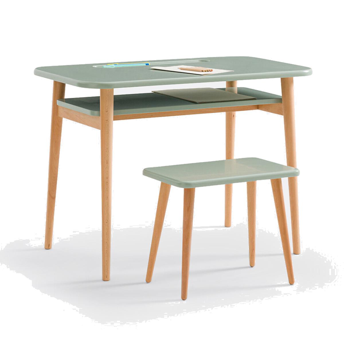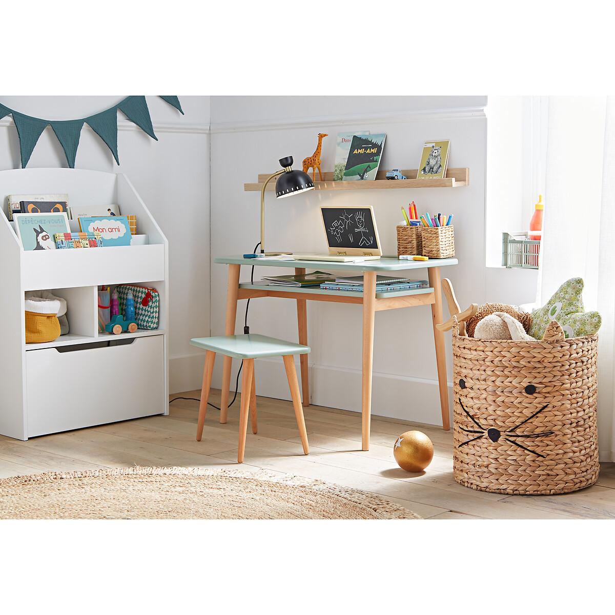 The child’s desk set and its Jimi school bench. Practical for drawing or doing homework, its simple lines bring a touch of Scandinavian inspiration to a contemporary child's room. Product Details • Storage underneath the desk top • Tapered legs in solid beech • Your desk is self-assembly • MDF with nitrocellulose varnish lacquered finish • Solid beech frameDimensions Desk : • Length: 80cm • Height: 57.8cm • Depth: 45cm. Bench : • Length 40cm • Height 33.5cm • Depth 25cmDelivery:. Assembly required. Available for home delivery. Note! Please check that all access points are large enough to accommodate your delivery (doors, stairs, lifts). • WOOD FROM SUSTAINABLY MANAGED FORESTS. FSC® certified wood comes from forests that are environmentally, socially and economically well managed. Parcel dimensions and weight: • L89 x H15 x D53 cm • 12.5kg