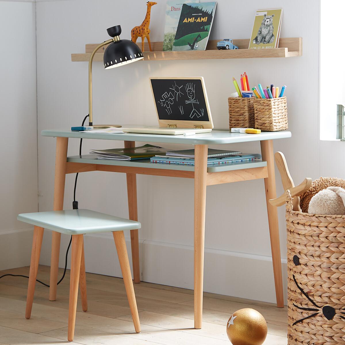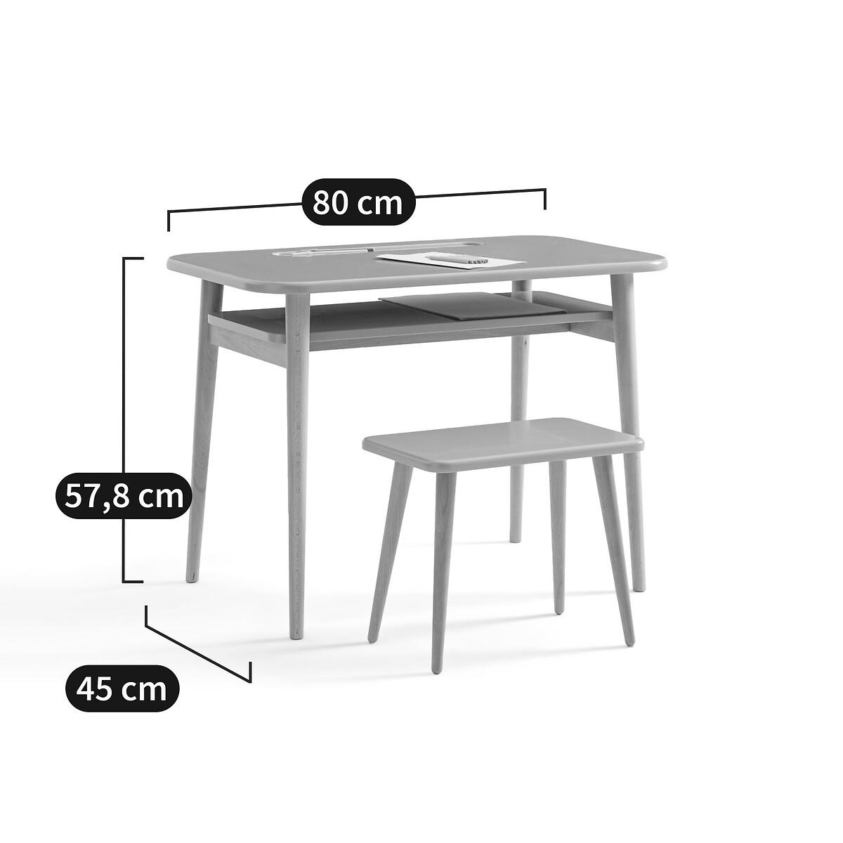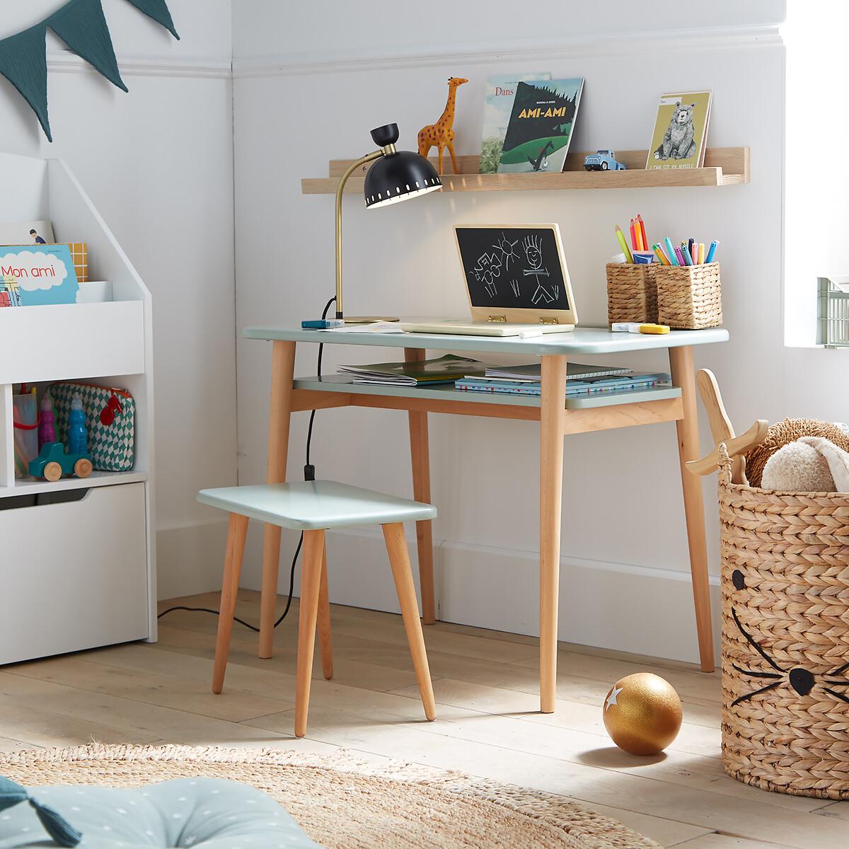 L’ensemble bureau enfant et son banc écolier Jimi. Pratique pour dessiner ou faire ses devoirs, ses lignes simples apportent une touche d’inspiration scandinave pour une chambre d’enfant contemporaine. Product Details • Storage underneath the desk top • Tapered legs in solid beech • Your desk is self-assembly • MDF with nitrocellulose varnish lacquered finish • Solid beech frameDimensions Desk : • Length: 80cm • Height: 57.8cm • Depth: 45cm. Bench : • Length 40cm • Height 33.5cm • Depth 25cmDelivery:. This product is sold for self-assembly. It will be delivered to your door. Note! Please check that all access points are large enough to accommodate your delivery (doors, stairs, lifts).Parcel dimensions and weight: • L89 x H15 x D53 cm • 12.5kg