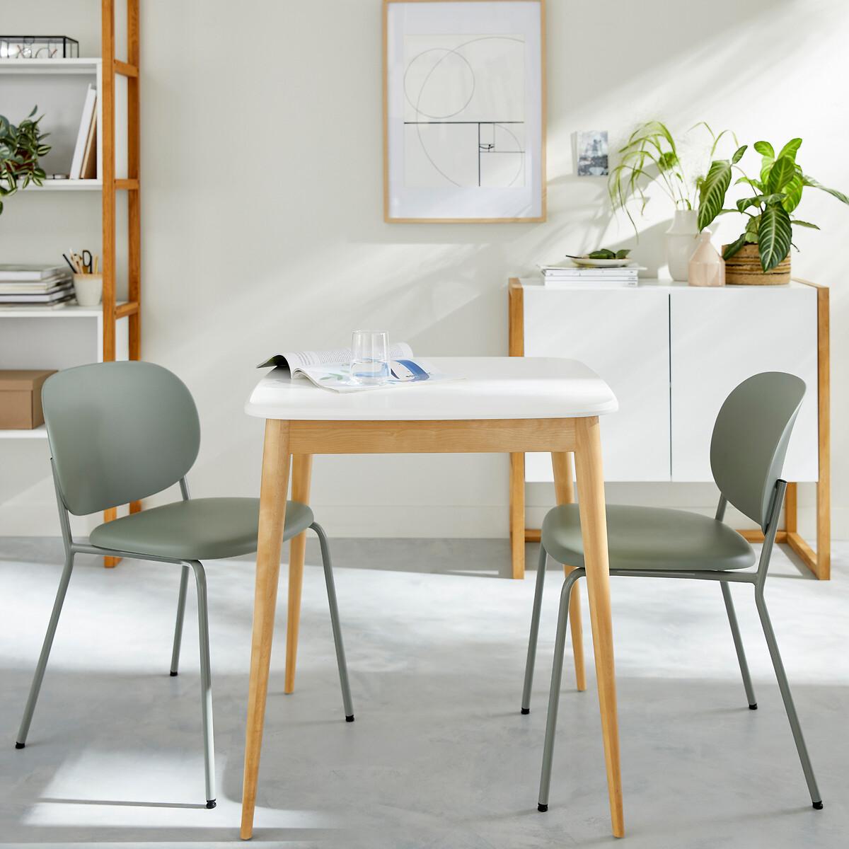 The Jimi 2-seater dining table. For small spaces, this Scandinavian-style Jimi table, bistro format, will be perfect to accommodate 2 people for dinner. Product Details • Chamfered table edges. • Plastic pads on feet. • Solid birch legs and belt, nitrocellulose varnish finish. • White-lacquered MDF tabletop with a polyurethane varnish finish. • Assembly: Approximately 1 hour, 2 people (minimum)Care instructions • To protect your table, consider trivets, coasters and placemats. Dimensions. Overall • Width: 70cm • Height: 75cm • Depth: 70cmDelivery:. Assembly required. Available for home delivery. Note! Please check that all access points are large enough to accommodate your delivery (doors, stairs, lifts). • WOOD FROM SUSTAINABLY MANAGED FORESTS. FSC® certified wood comes from forests that are environmentally, socially and economically well managed. Parcel Dimensions: • 1 parcel • L83 x H14 x D80.5 cm • 14kg
