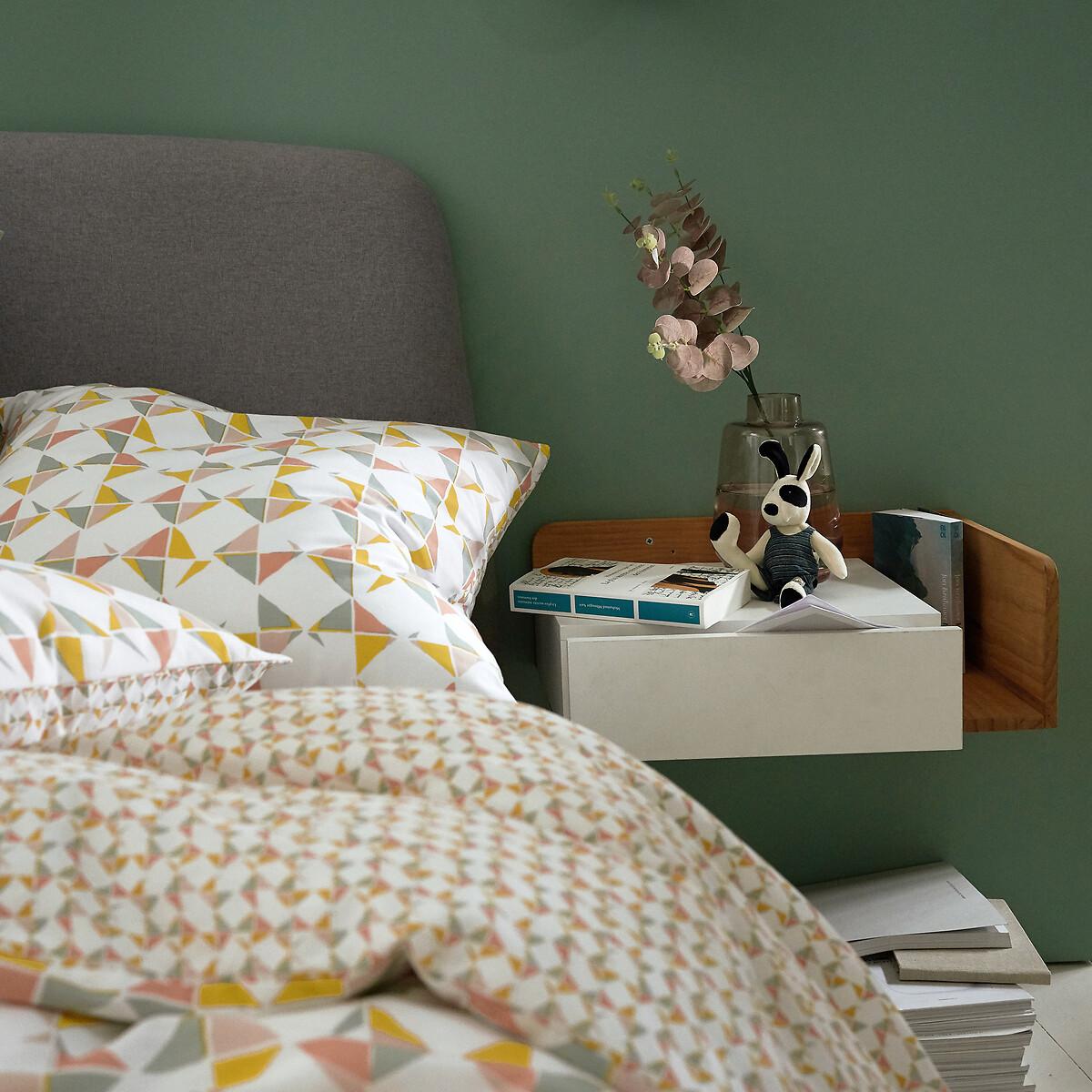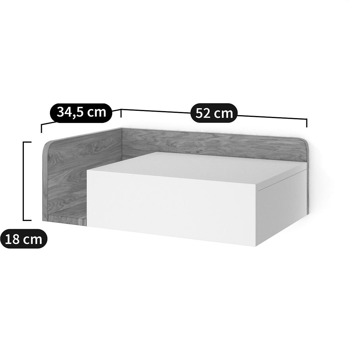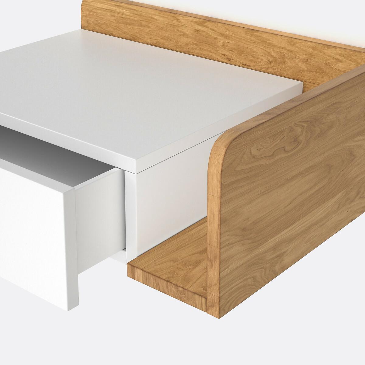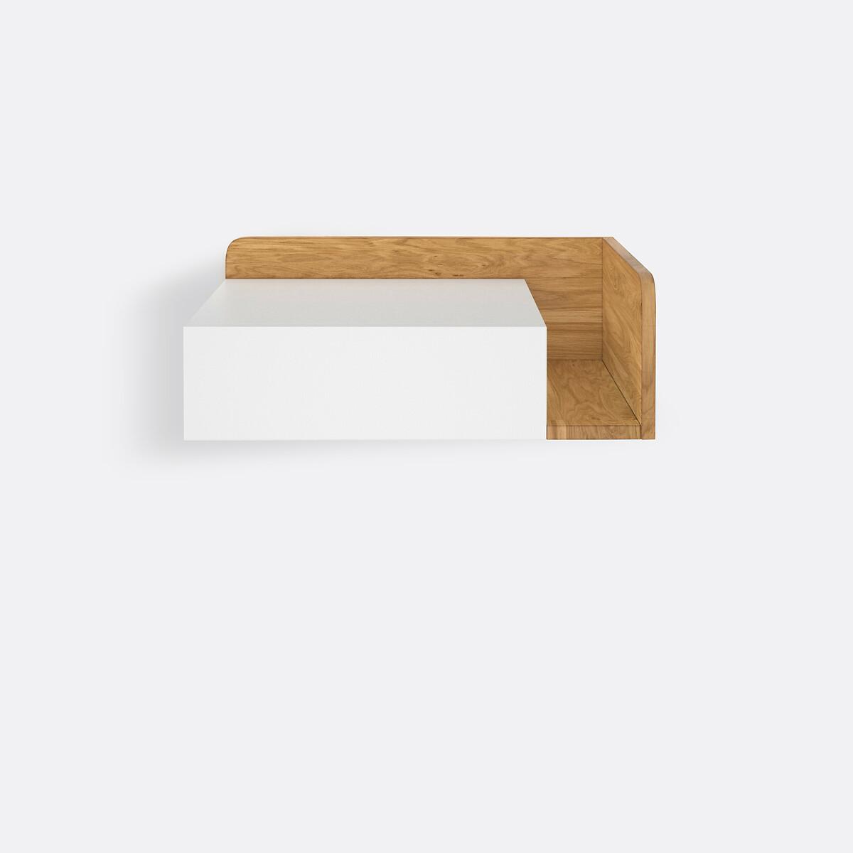 Jimi floating bedside table, left-hand side. This Jimi floating bedside table brings a light and contemporary look to a simply styled bedroom.