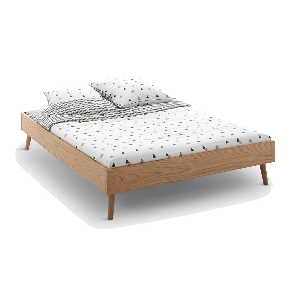 The Jimi bed. Its chic and modern style matches all interiors. Designed by La Redoute Intérieurs. Product Details • MDF with oak veneer and nitrocellulose lacquered finish • Legs in solid oak with nitrocellulose varnish finish • Plywood slatted base • Reinforcment in solid pineDimensions. Double • Width: 143.8cm • Height: 35.8cm • Length: 193.8cm. King size • Width: 163.8cm • Height: 35.8cm • Length: 203.8cm. Super King size • Width: 184cm • Height: 35.8cm • Length: 204cm • Height available under the long side: 19cm • Assembly required. • WOOD FROM SUSTAINABLY MANAGED FORESTS. FSC® certified wood comes from forests that are environmentally, socially and economically well managed. Parcel Dimensions1 parcel • Double Size: 198 x 23 x 22cm - 31.2kg • King size: 218 x 23 x 22cm - 35kg • Super King Size: 218 x 25 x 22cm - 38kg