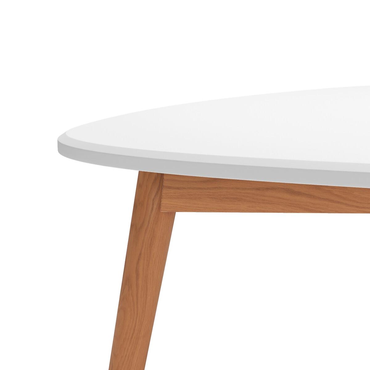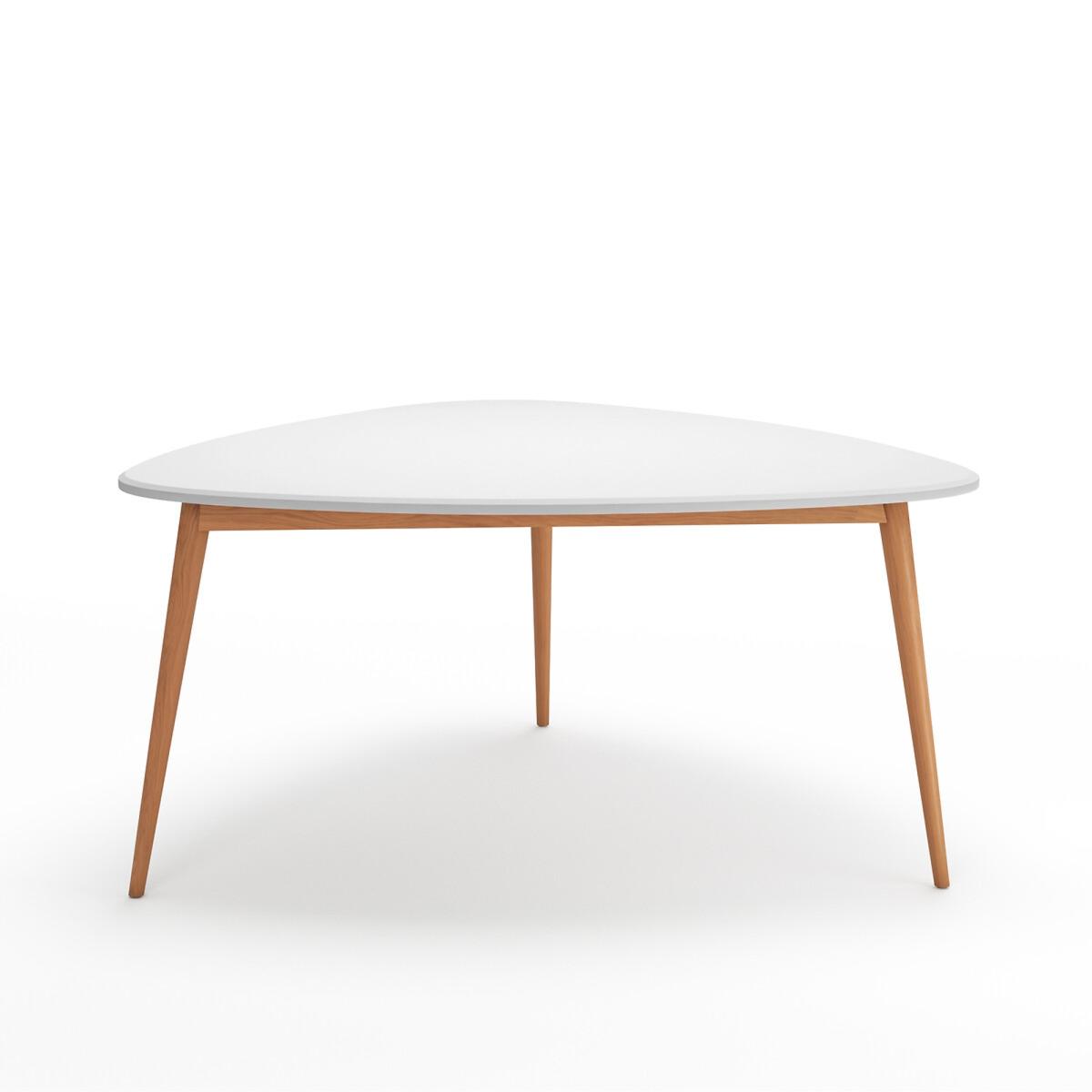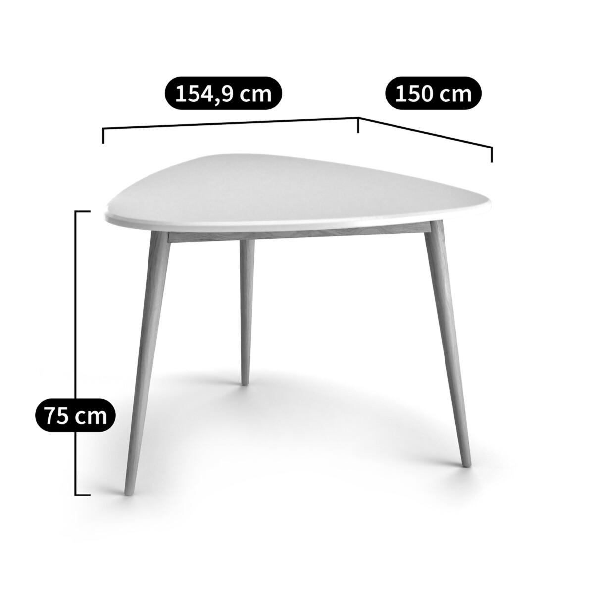 Jimi 6-seater dining table. This neo retro table makes a great style statement in the dining room! Product Details: • Oval shape • Seats 6 • Lacquered white MDF top with polyurethane varnish finish • 3 solid birch legs with nitrocellulose varnish finish • To preserve the lacquered appearance of its top and prevent scratches, protect the coffee table from shocks and impact. We also strongly recommend the use of coasters and/or table mats. • Assembly required See the full Jimi collection online. Dimensions: • Length: 154.9cm • Height: 75cm • Depth: 150cm Parcel dimensions and weight: • 1 parcel • L163 x H13.5 x D159cm • 50.5kg