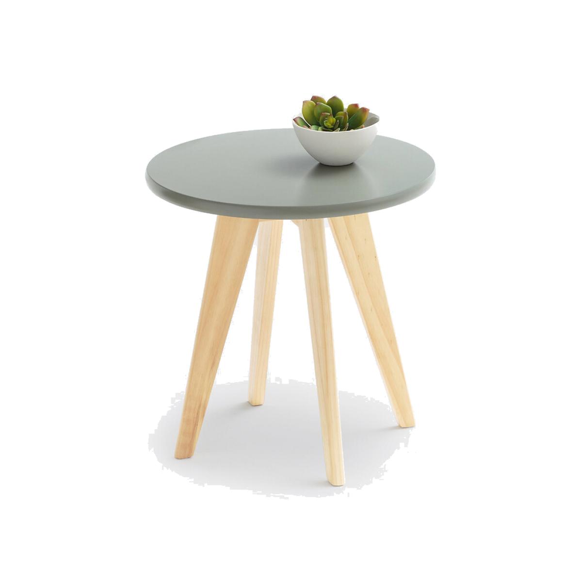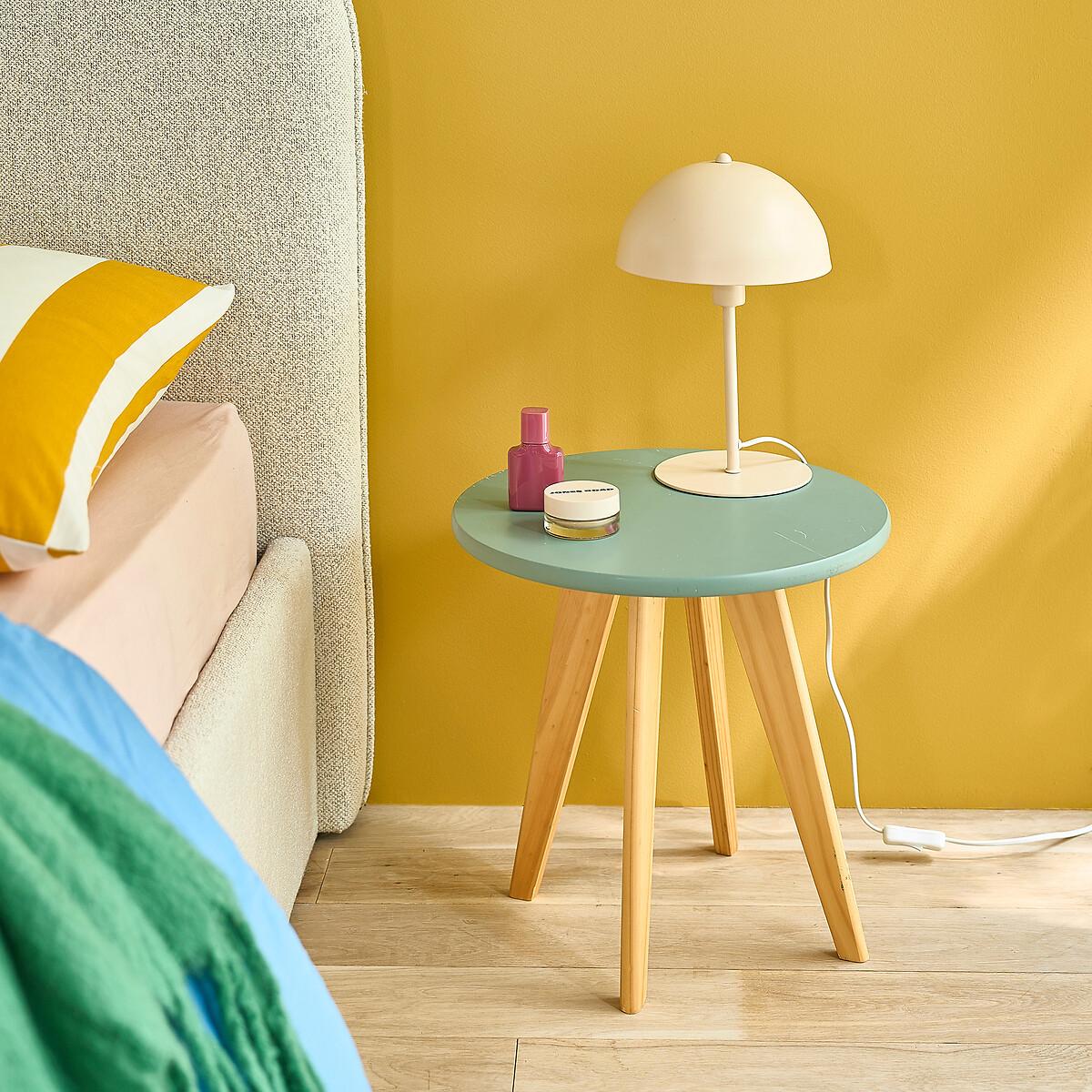 This Jimi round bedside table comes in a pretty range of pastel colours for a soft and colourful touch. Product Details • 1 coloured round top • 4 legs • Your Jimi round bedside table is supplied for self-assembly. • Coloured top made of MDF nitrocellulose finish • Legs in solid pine with a clear nitrocellulose varnish finish. Dimensions • Height 40cm • Diameter 40cm