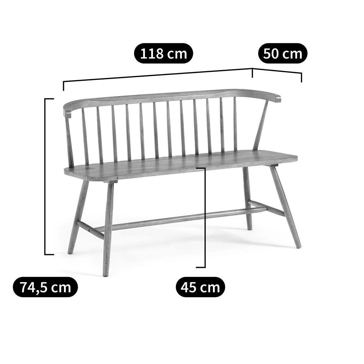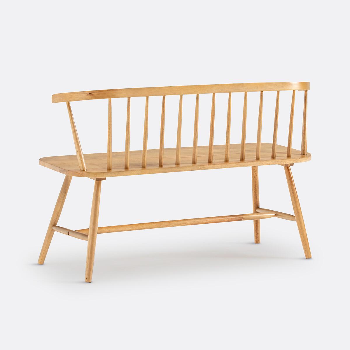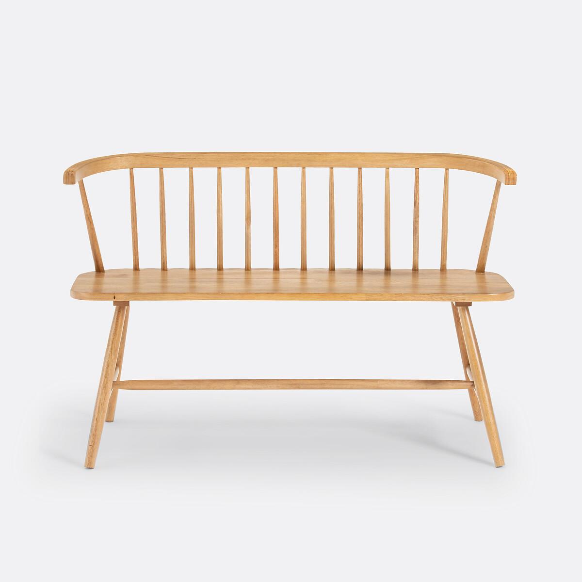 Warm light wood and a Scandinavian spirit. The Jimi table bench can accommodate 2 people (always good for extra guests).Product Details • Solid rubberwood • Nitrocellulose varnish finish • 2-seater. Dimensions • Length: 118cm • Height: 74.5cm • Depth: 50cm • Seat: L113 x H45 x D38cmDelivery:. Assembly required. Available for home delivery. Note! Please check that all access points are large enough to accommodate your delivery (doors, stairs, lifts). Dimensions and weight of parcel1 parcel • L124.1 x H45.7 x D54.2cm. 15 kg