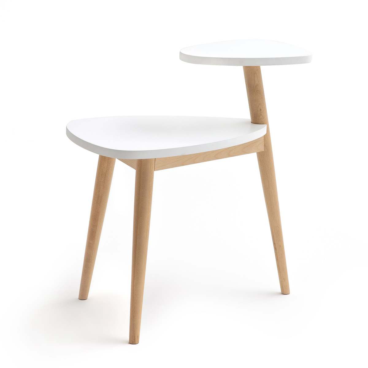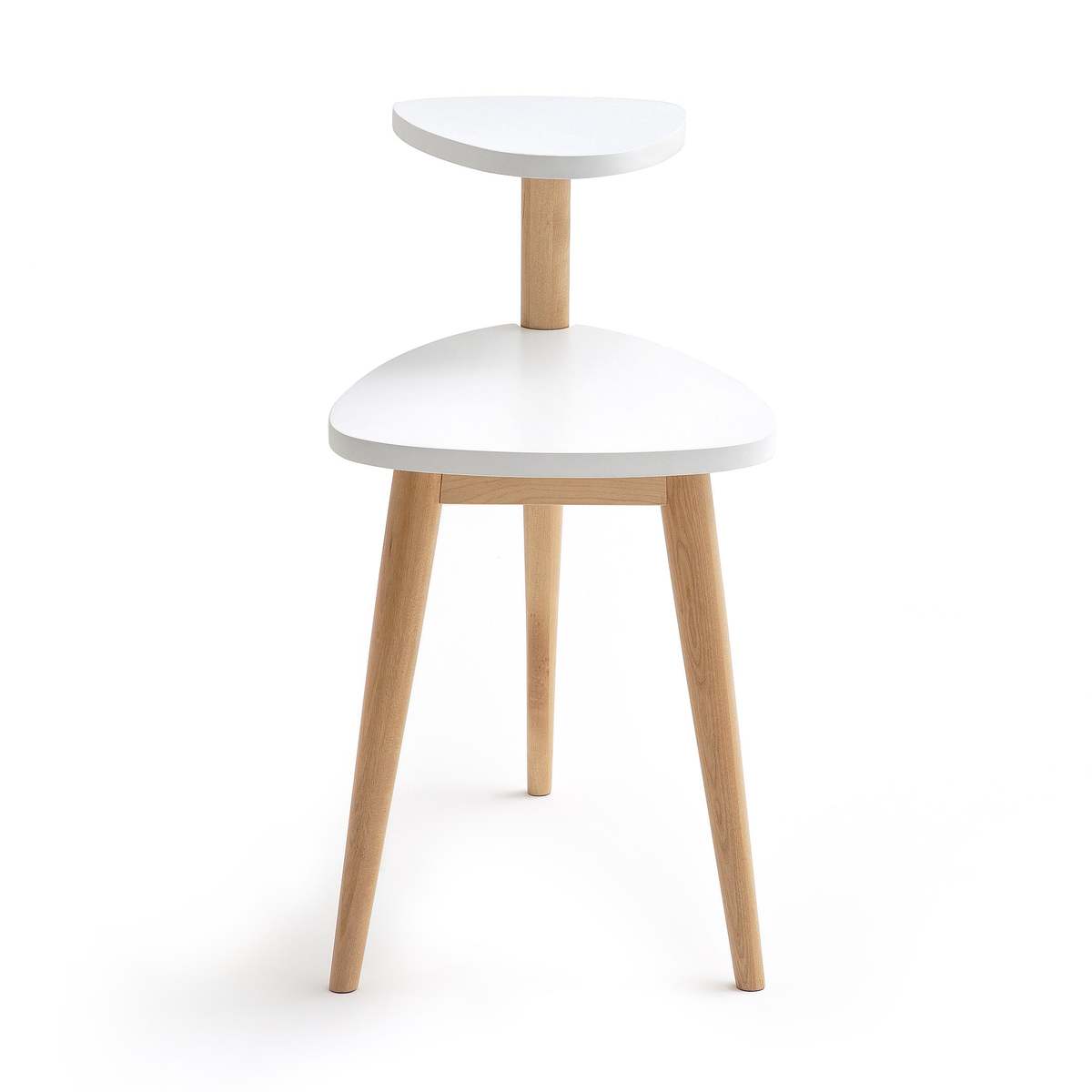 I love this vintage-inspired side table for its clever use of two tiers and its minimalist silhouette. It works particularly well in contemporary, Scandinavian, or vintage interiors, where its clean lines and natural wood details can shine. Practical styling tips include using the top surface for a statement lamp or a vase, while the lower tier is perfect for books or small decorative items. Its compact size makes it versatile-ideal next to a sofa or armchair-and the two-tier design adds practicality without sacrificing style. Keep accessories simple to highlight the table’s unique shape and the blend of white and natural wood tones.
