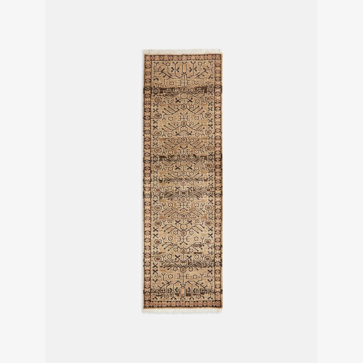 Inspired by the love-worn, antique rugs at Babington House and Soho Farmhouse, our Jimmy runner is hand-knotted in India by skilled artisans, and made with a cosy raised wool pile. An intricate, vintage-style design in brown tones complements a variety of interiors and textures, including linen and velvet. 100% wool-pile runner Hand-knotted in India Brown tones Vintage-inspired design Available in five sizes and two runners Inspired by antique rugs at Babington House and Soho Farmhouse