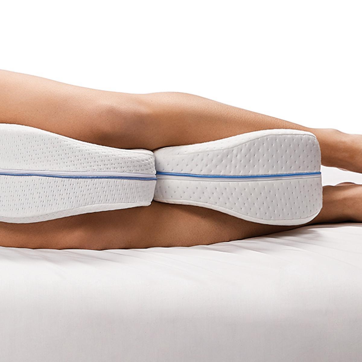 The perfect hip and leg support for side-sleepers, this contour pillow comfortably fits your natural shape to gently cradle your thighs in a horizontal, natural position. This pillow helps keep your hips, legs and knees aligned while sleeping and allows you to change sleep positions and bend your knees. This pillow features a curved shape to comfortably fit the pelvis of both men and women. This pillow is made from a ventilated memory-foam core for cool comfort.
