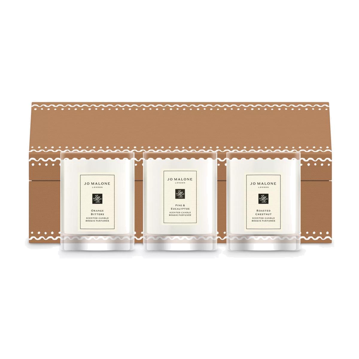 Follow us into Gingerbread Land. Make the air merry wherever you are with three festive fragrances. Create a sensual atmosphere with Orange Bitters, boost the celebrations with Pine & Eucalyptus and add a warm, inviting mood with Roasted Chestnut. Presented in a gingerbread house gift box. Exclusively available online. Set contains: Orange Bitters Travel Candle, 65g Pine & Eucalyptus Travel Candle, 65g Roasted Chestnut Travel Candle, 65g Your Jo Malone London order will be exquisitely wrapped in their iconic box, tied with a beautiful grosgrain ribbon. Looking to find your new favourite scent in person? Visit our Jo Malone London boutiques inside selected John Lewis & Partners shops: Cheadle Chelmsford Cribbs Causeway Edinburgh Exeter High Wycombe Horsham Milton Keynes Oxford Street Reading Southampton Stratford White City