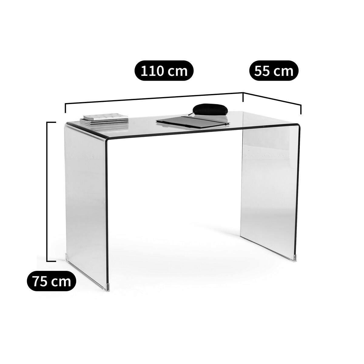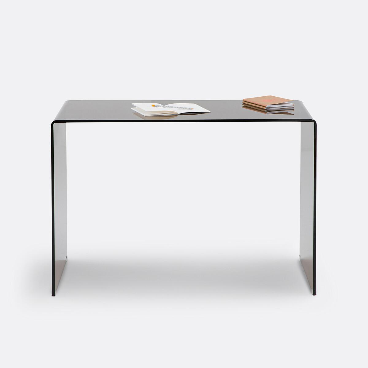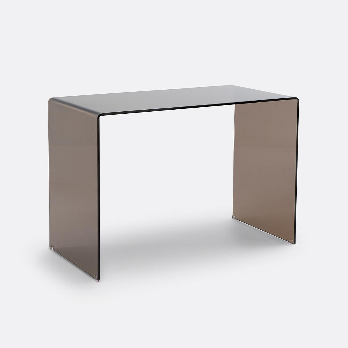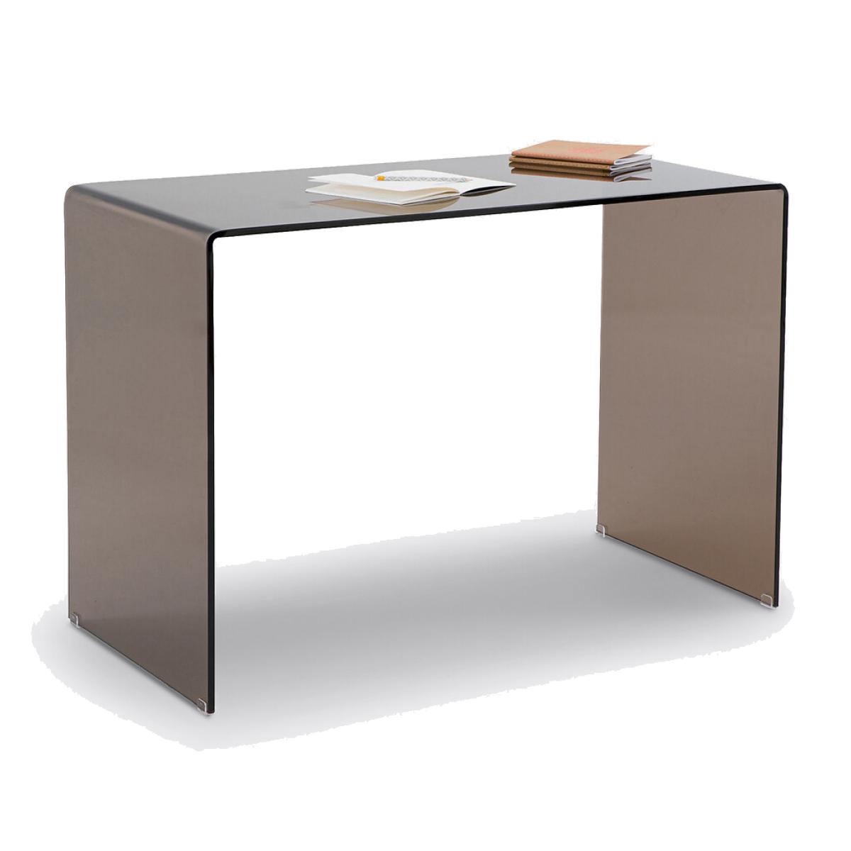 Joan console desk. Made from transparent tempered glass, the Joan console desk features a decidedly modern and understated style. Product Details • Transparent or smoked tempered glass, thickness 13 mm • Transparent pads to protect the base. Dimensions • Width: 110cm • Height: 75cm • Depth: 55cmDelivery:. Sold pre-assembled. Available for home delivery. Note! Please check that all access points are large enough to accommodate your delivery (doors, stairs, lifts).Parcel Dimensions: • L117 x H63 x D84 cm • 48kg
