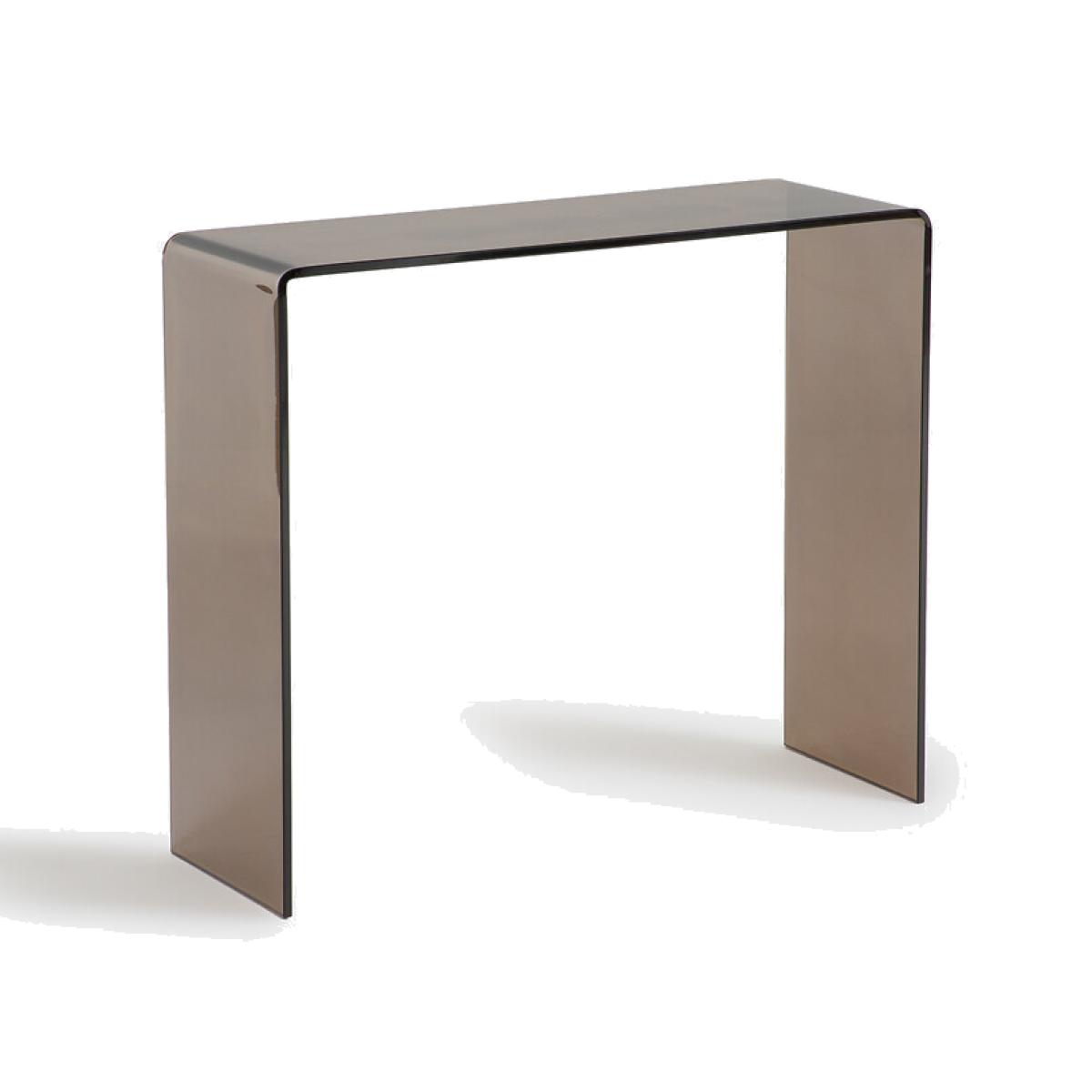 In smoked tempered glass, the Joan console table has a definitively modern, uncluttered style. It blends in with all interiors. A signature design by La Redoute Interieurs. Product Details • In sheer smoked brown tempered glass, 12mm thick • Sheer polyethylene runners. Dimensions • Width: 90cm • Height: 75.5cm • Depth: 30cm • Weight: 20.8kg • Sold pre-assembled. Parcel Dimensions1 parcel • W99 x H85 x D39cm. 27.5kg