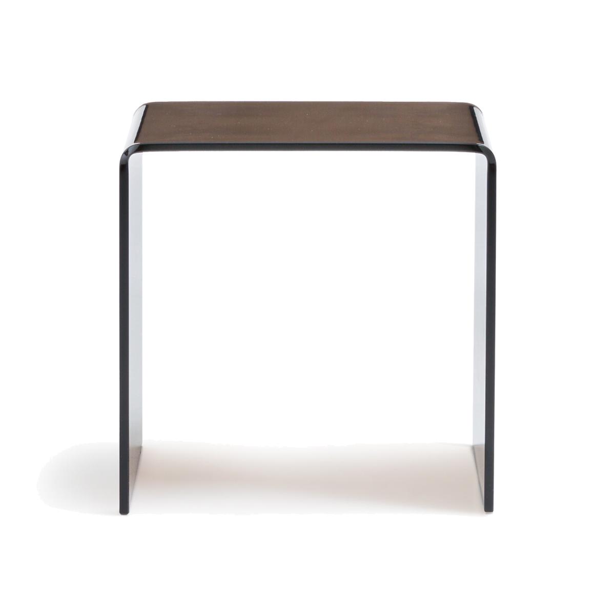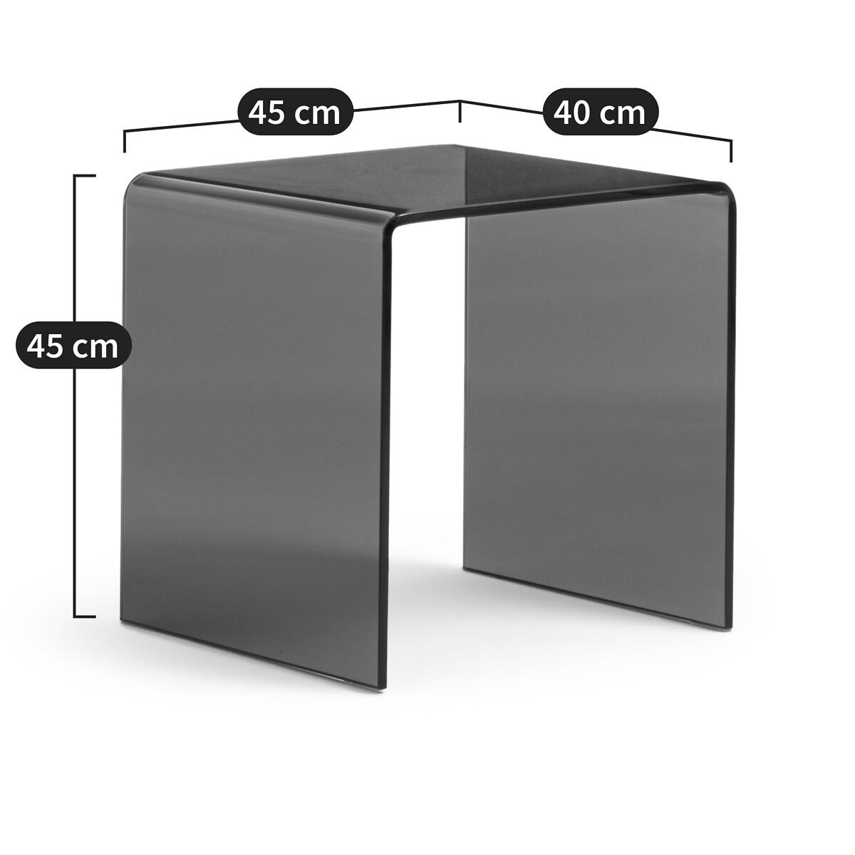 In transparent or smoked tempered glass, the Joan bedside table adopts a definitively modern and refined style. Product Details • Transparent or smoked tempered glass, thickness 12mm. Dimensions • Width: 45cm • Height: 45cm • Depth: 40cm • Weight: 15kg • Sold pre-assembled. Dimensions and weight of parcel1 parcel • L51.5 x H47 x D51.5cm. 18.5kg