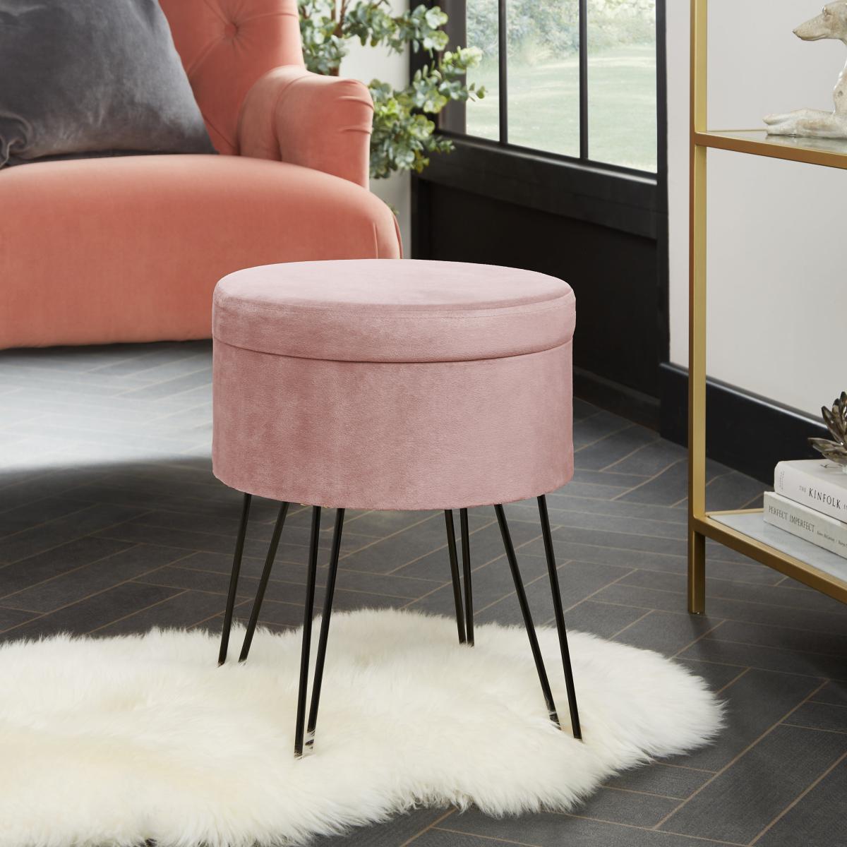 I love the Joanna storage stool in blush for its versatile and understated elegance. Its soft colour makes it easy to incorporate into both contemporary and vintage-inspired interiors, adding a subtle touch of colour without overwhelming the space. It works particularly well in bedrooms as a chic extra seat or as a stylish bedside table with hidden storage. For practical styling, position it next to a cosy armchair or at the foot of a bed, and layer with textured cushions or throws to create a welcoming nook. Its slender, hairpin legs give it a minimalist feel that can elevate modern interiors, but it also pairs beautifully with more classic or retro schemes when matched with brass or smoked glass accents.