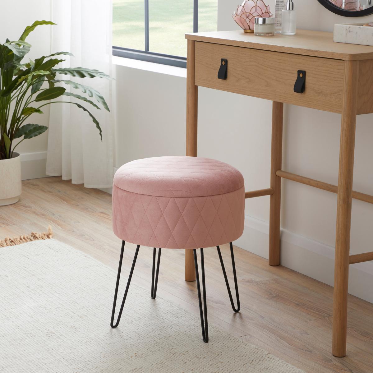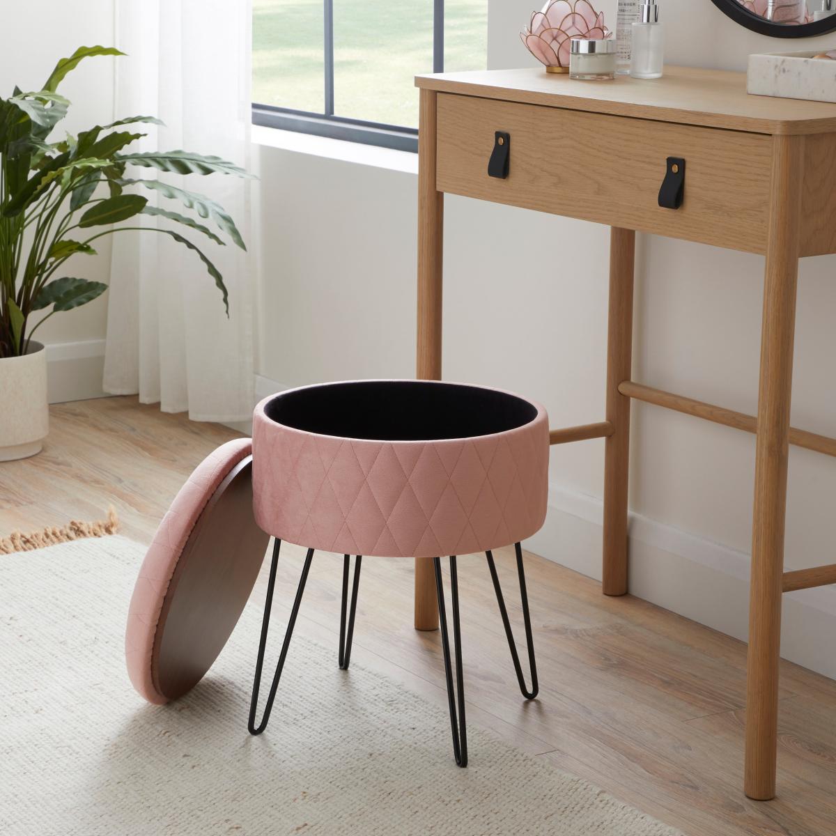 I love this pink velvet footstool for adding a pop of colour and luxe texture to a variety of interiors. It works especially well in contemporary or Scandinavian-styled spaces, where its soft hue can brighten up neutral tones, or in more eclectic settings that embrace vibrant accents. Practical styling tips include using it as a footrest or side table, paired with plush throws or colourful accessories to enhance its statement appeal. Its compact size makes it versatile for both living rooms and bedrooms, and the velvet finish adds a sophisticated touch that elevates the overall look of a space.