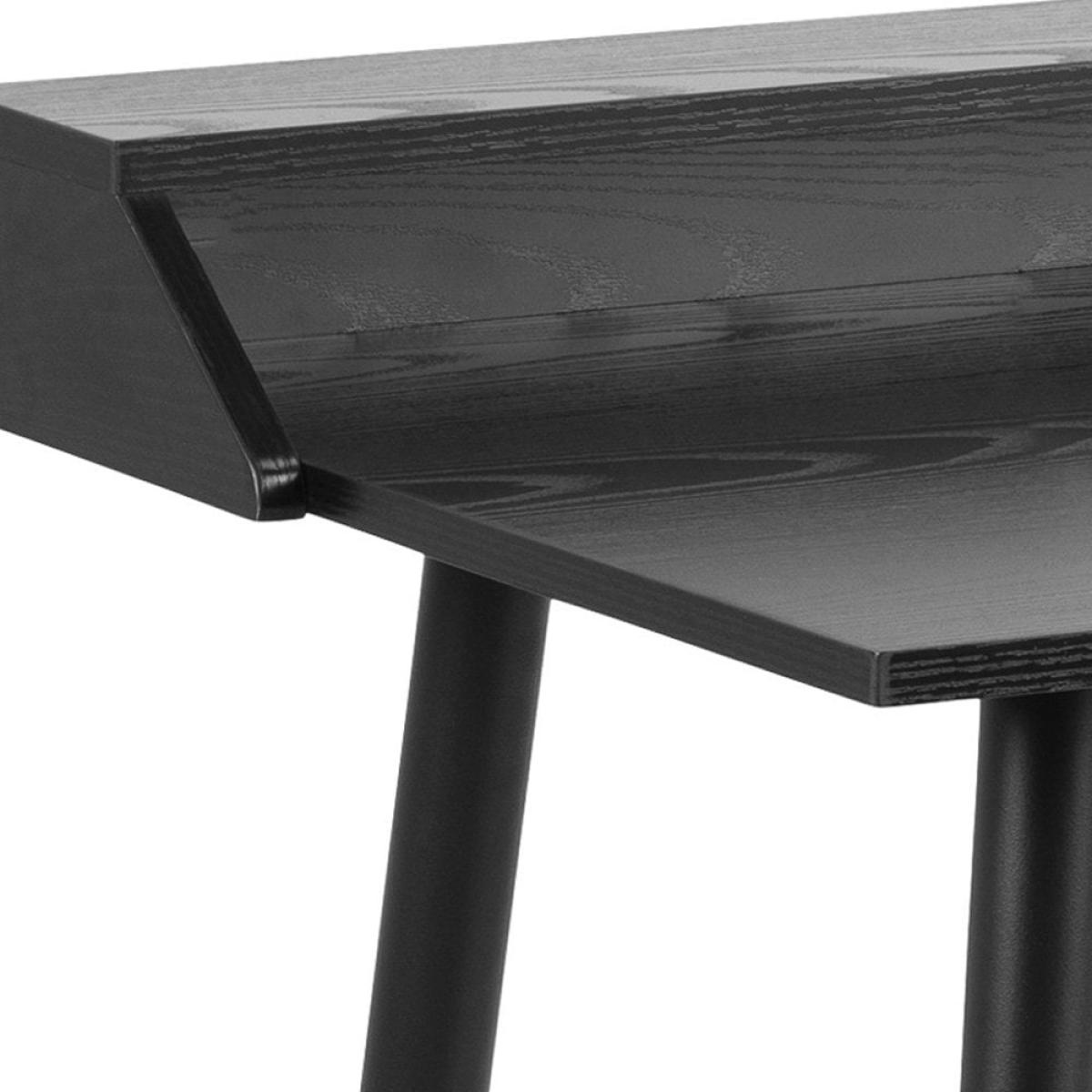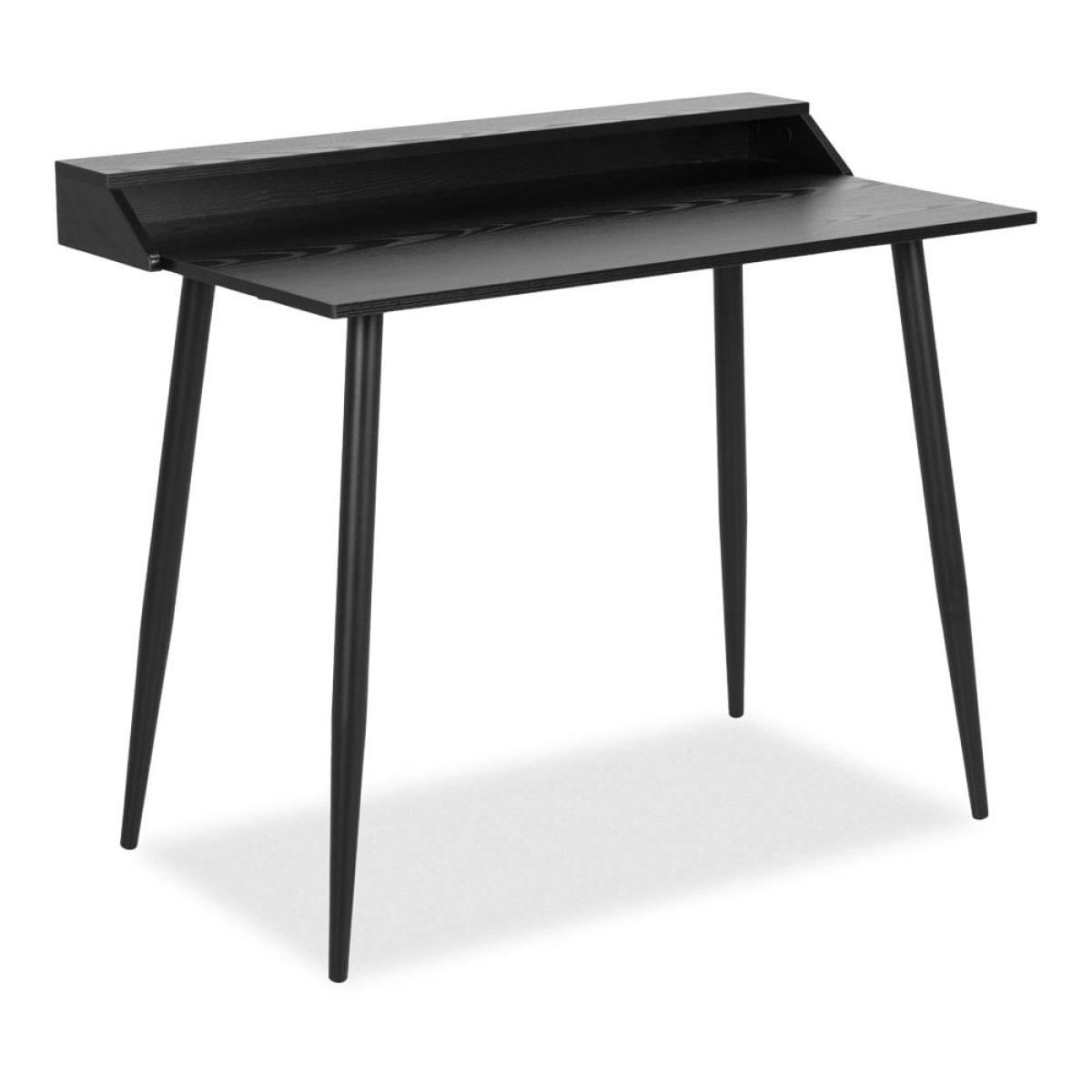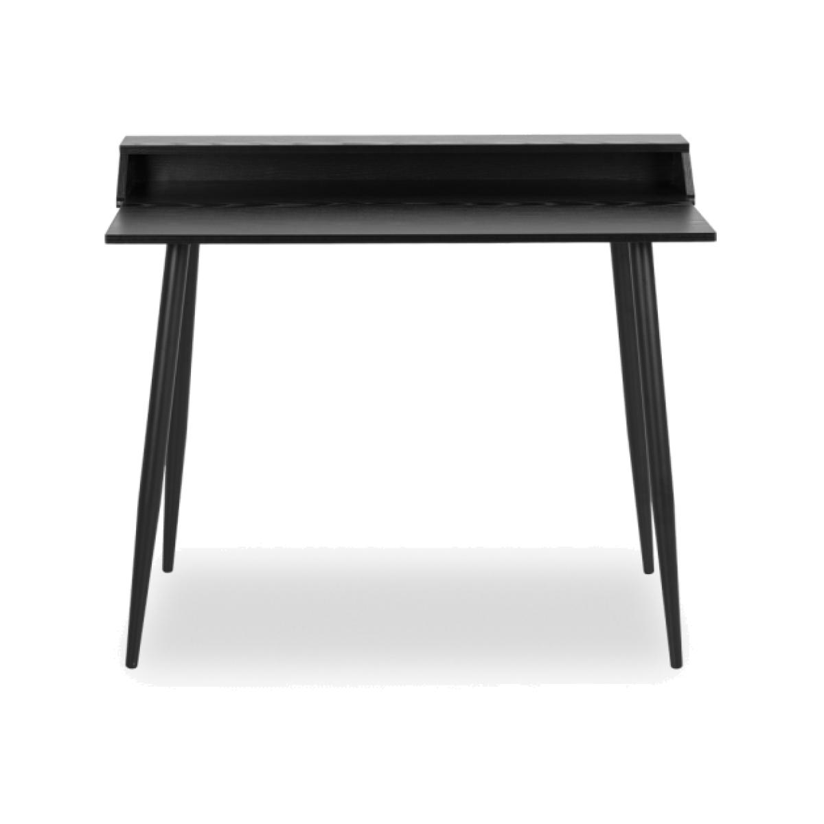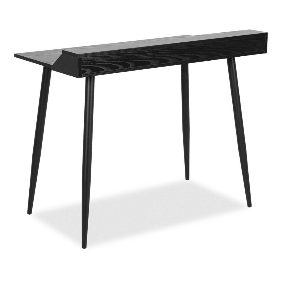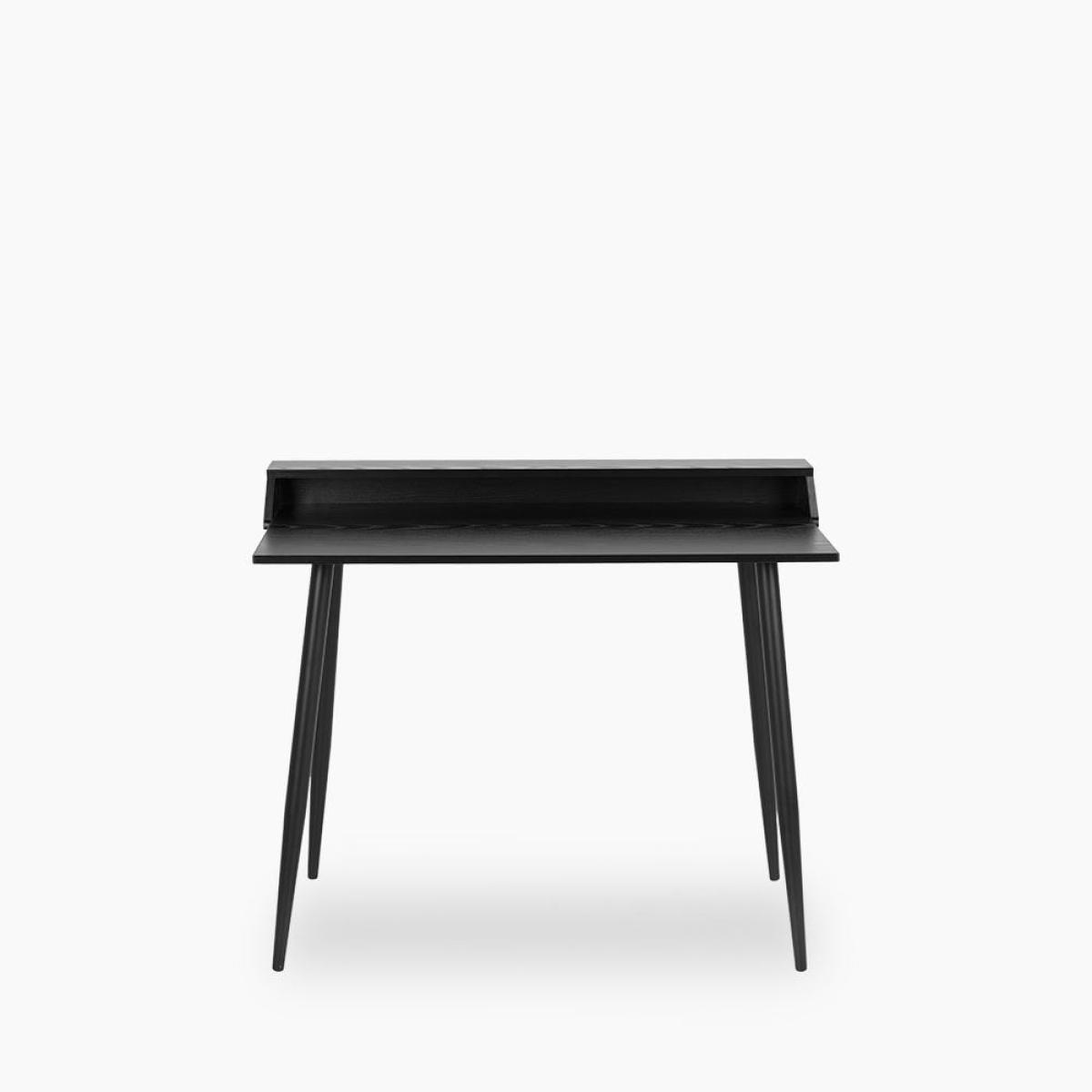 Practical and stylish, the Joe desk features tapered black metal legs, black ash effect finish and angled edges to give a mid-century charm to your home study. The subtle alcove is a handy storage option that allows you to hide away unwanted clutter from the working week.