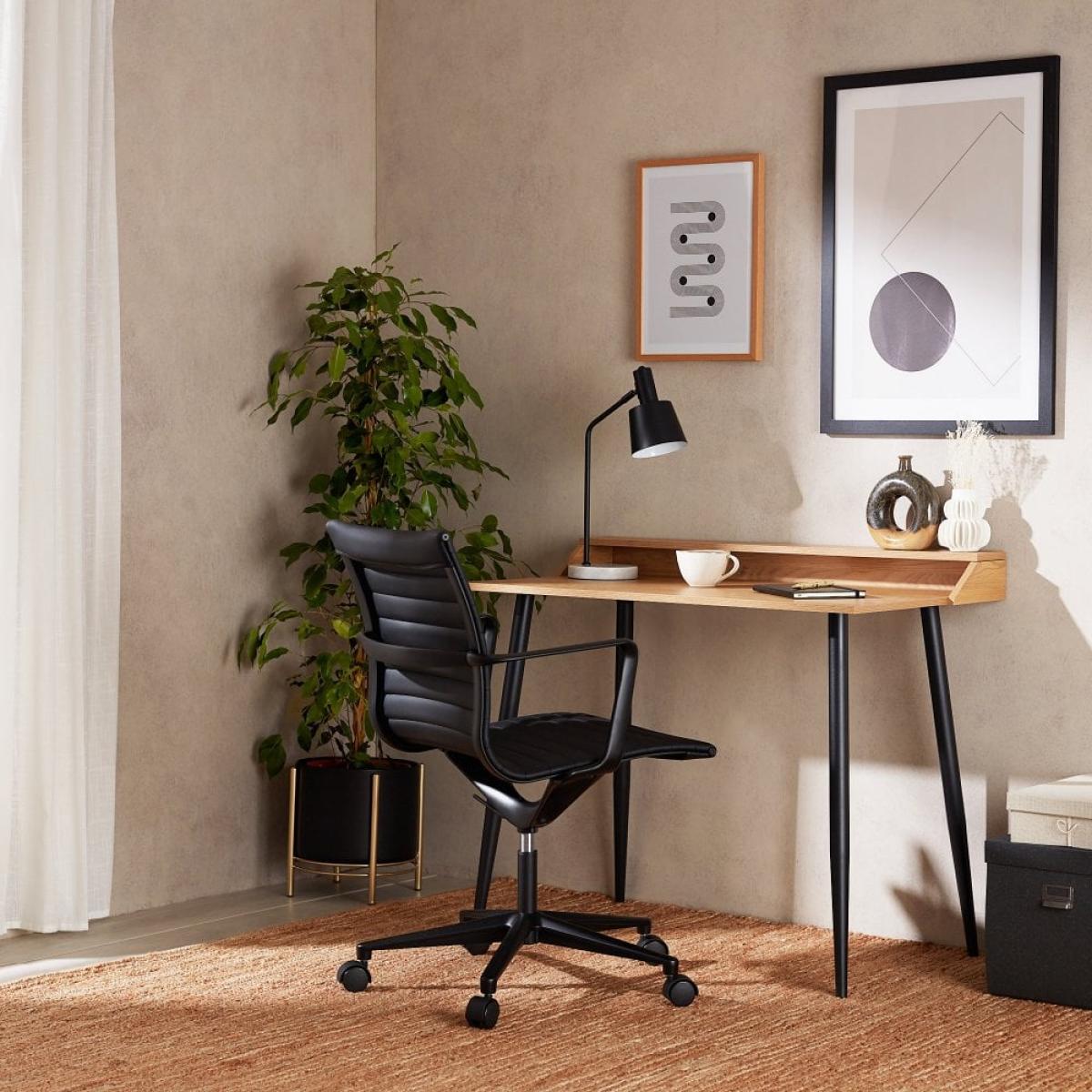 I love this desk for its sleek, contemporary look and versatility. The black ash effect lends it a modern, sophisticated feel that pairs well with a variety of interiors, from Minimalist to Scandinavian or even industrial styles. It works particularly well in smaller spaces where a streamlined design prevents visual clutter but still offers enough surface area for work essentials. For styling tips, consider layering with matte black or metallic accessories to add depth, and keep the desktop clutter-free to highlight its clean lines. It’s a practical choice for creating a stylish yet functional workspace that easily integrates into different rooms and schemes.