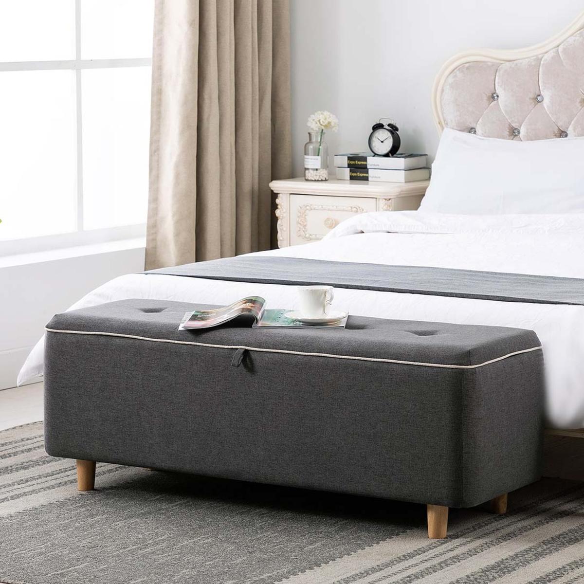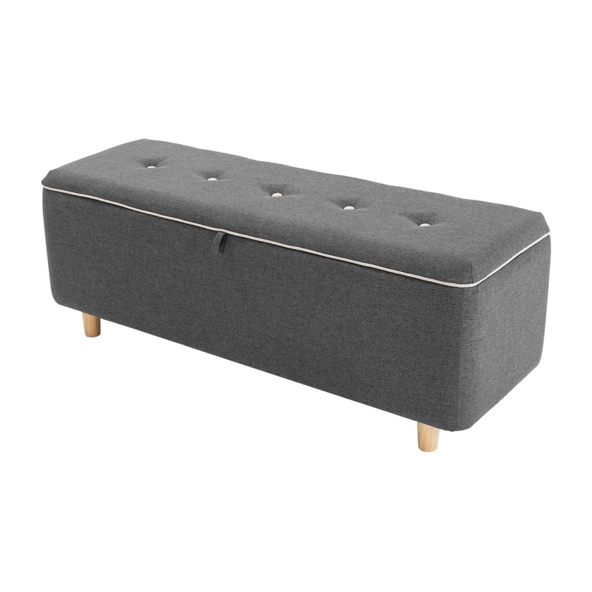 Joel Linen Storage Ottoman Bench with Buttons - Charcoal