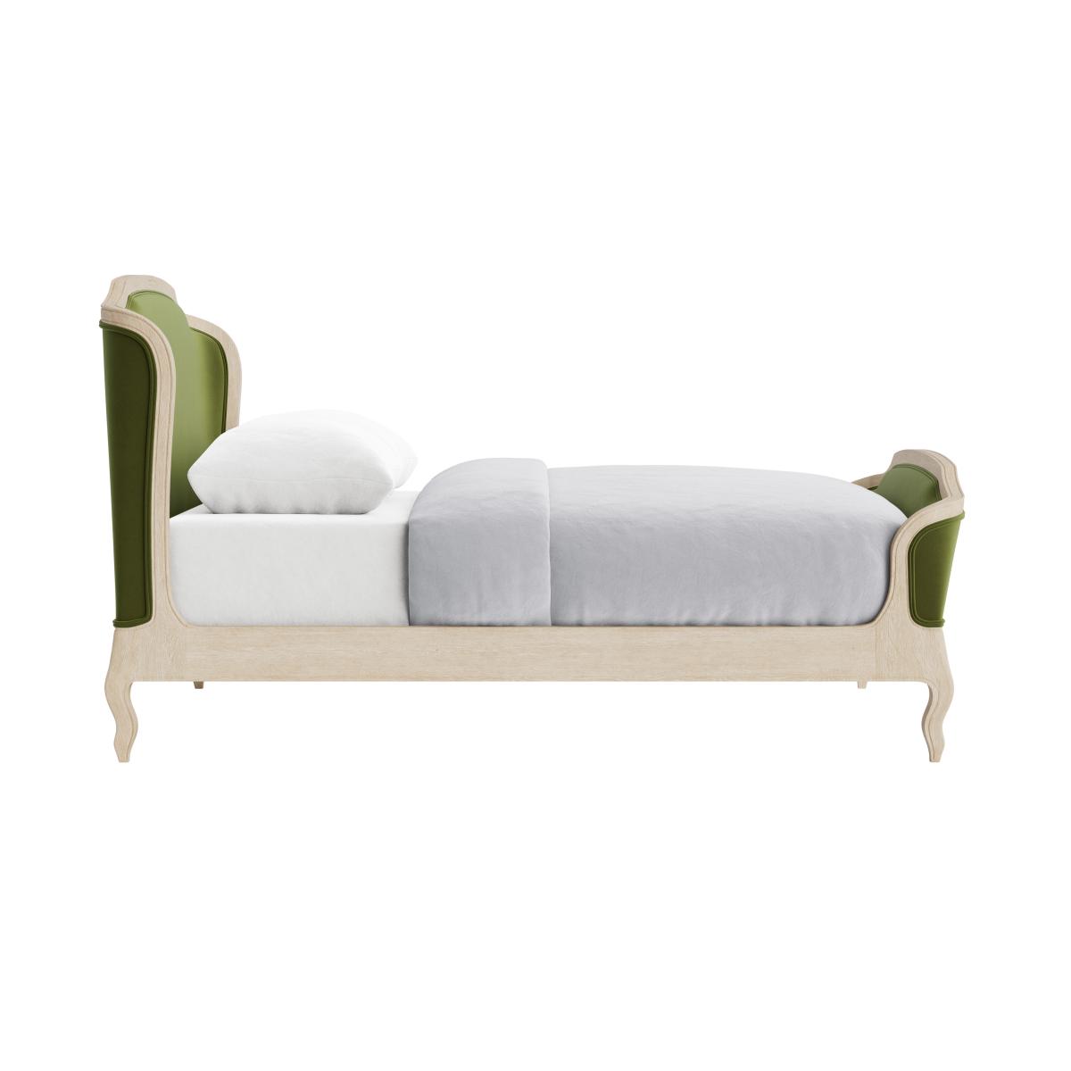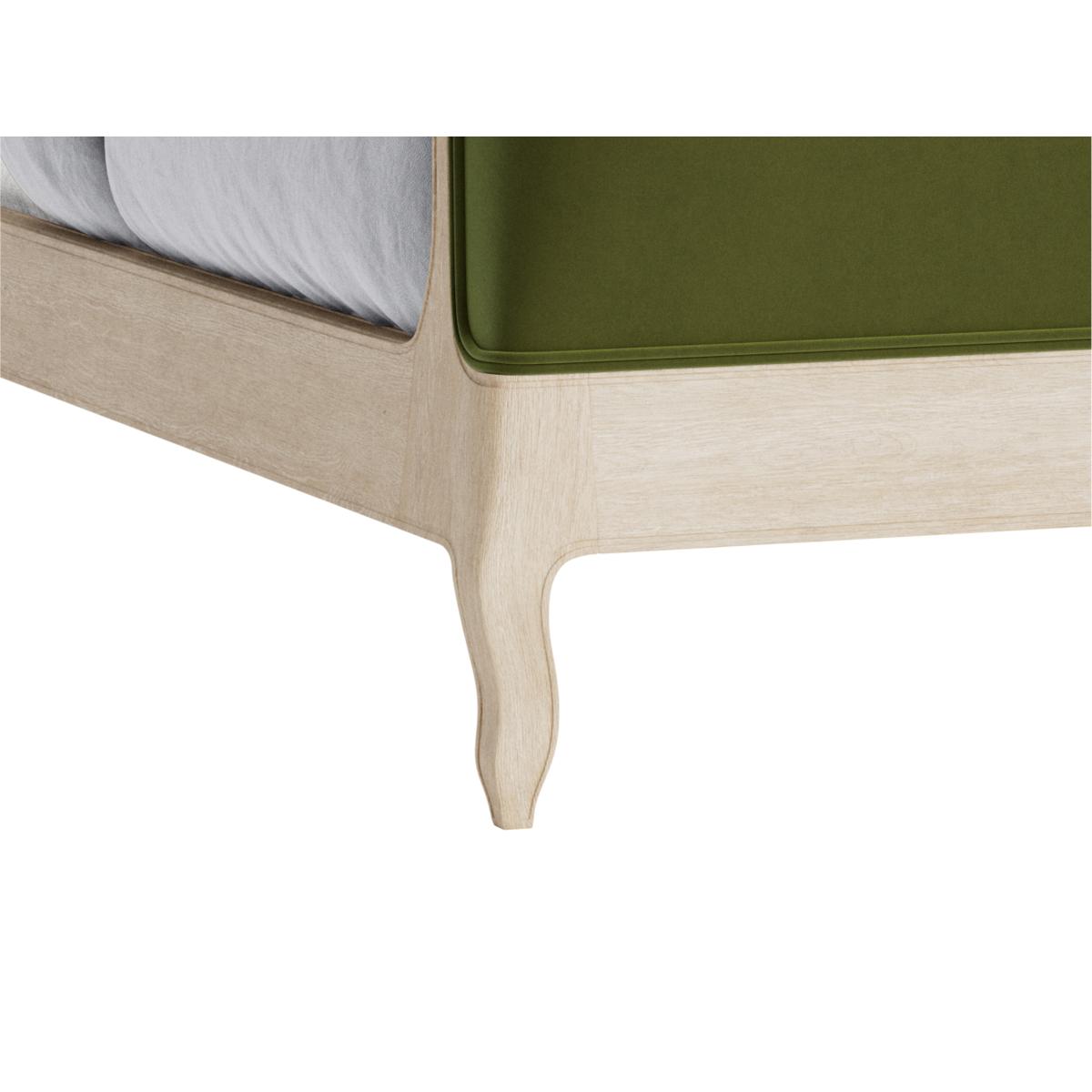 I really like this bed frame for its classic yet contemporary look, making it versatile for various interior styles. The olive-green upholstery adds a splash of colour without overwhelming a space, making it ideal for both neutral bedrooms and more colourful schemes. It works well in vintage-inspired settings or modern spaces looking for a touch of sophistication. For styling, consider pairing it with layered bedding in soft, complementary tones like creams or taupe, and add textured cushions to create a cosy, inviting feel. To keep the look streamlined, avoid overly ornate accessories - instead, a simple bedside table and understated lighting will highlight its elegant silhouette. This frame is especially good for those wanting a statement piece that balances comfort with a refined aesthetic.