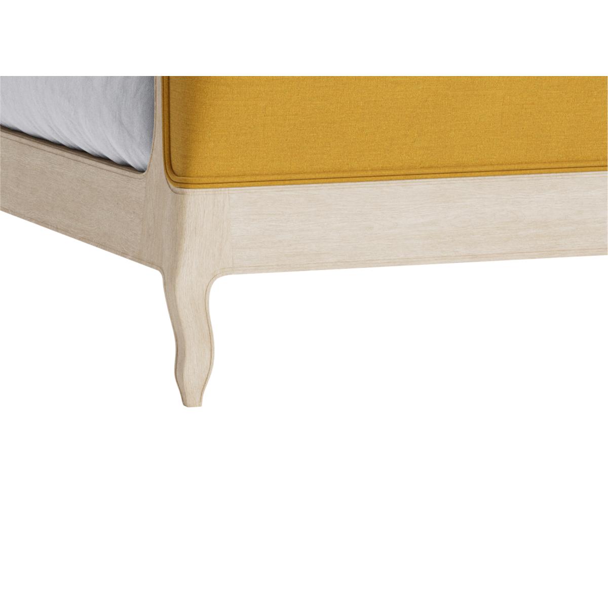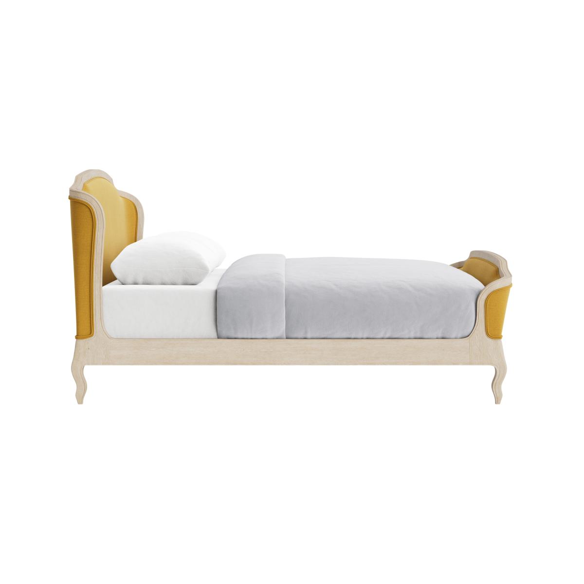 The Joëlle bed is a strong statement piece that works beautifully in both classic and eclectic interiors. Its combination of a muted, neutral frame with a bold, mustard-yellow upholstered headboard and foot adds warmth and character to the space. I love how versatile it is-it can be styled simply with crisp linens for a minimalist look or layered with textured throws and cushions for a more layered, inviting feel. Practical styling tips include pairing it with soft, neutral bedding to keep the focus on the frame, and incorporating vintage or antique bedside tables to enhance its timeless elegance. This bed works well in bedrooms aiming for a cosy yet sophisticated vibe.