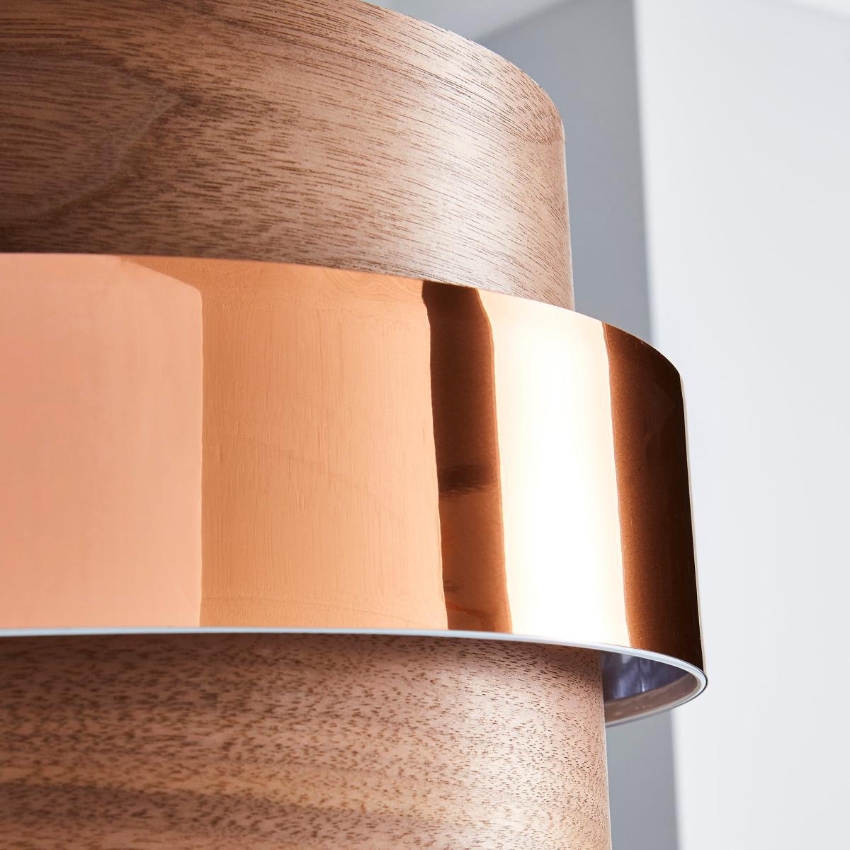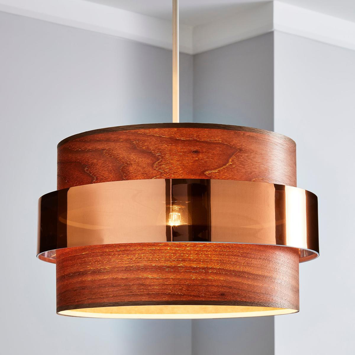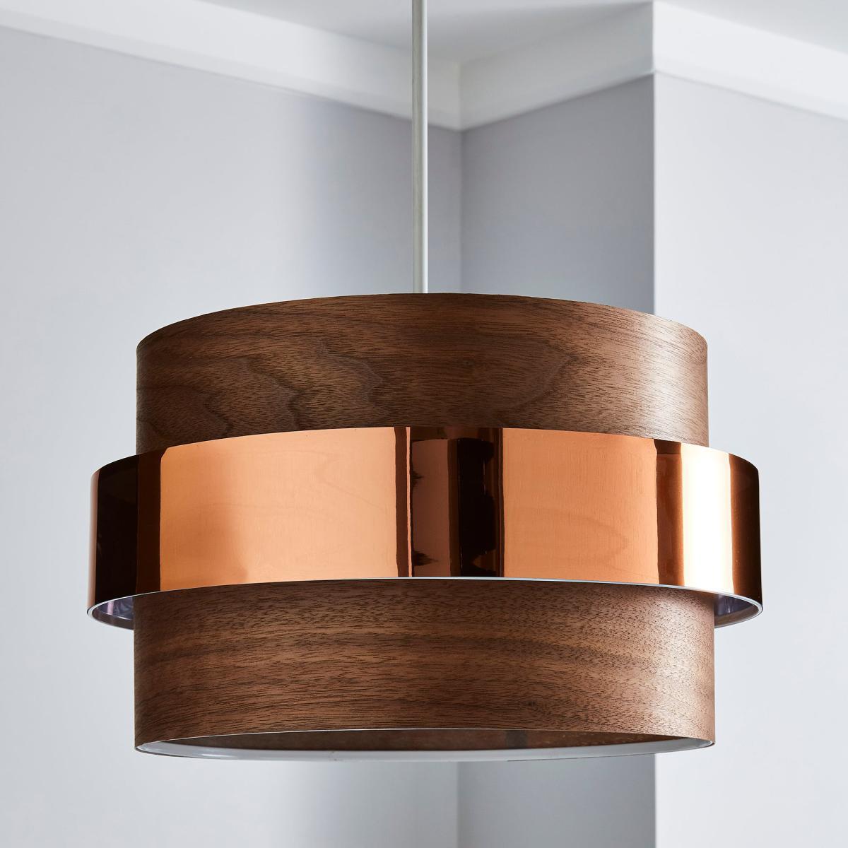Add an eye catching feature to your home with this stunning pendant. It features a dark wood veneer outer with a beautiful copper finish, perfect for any room of the home.
