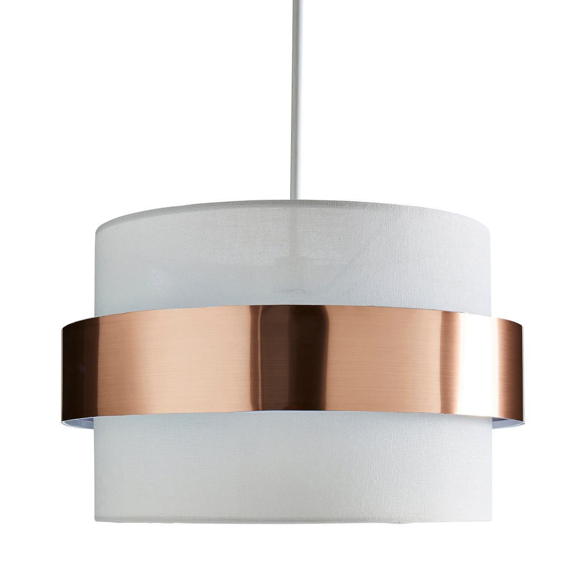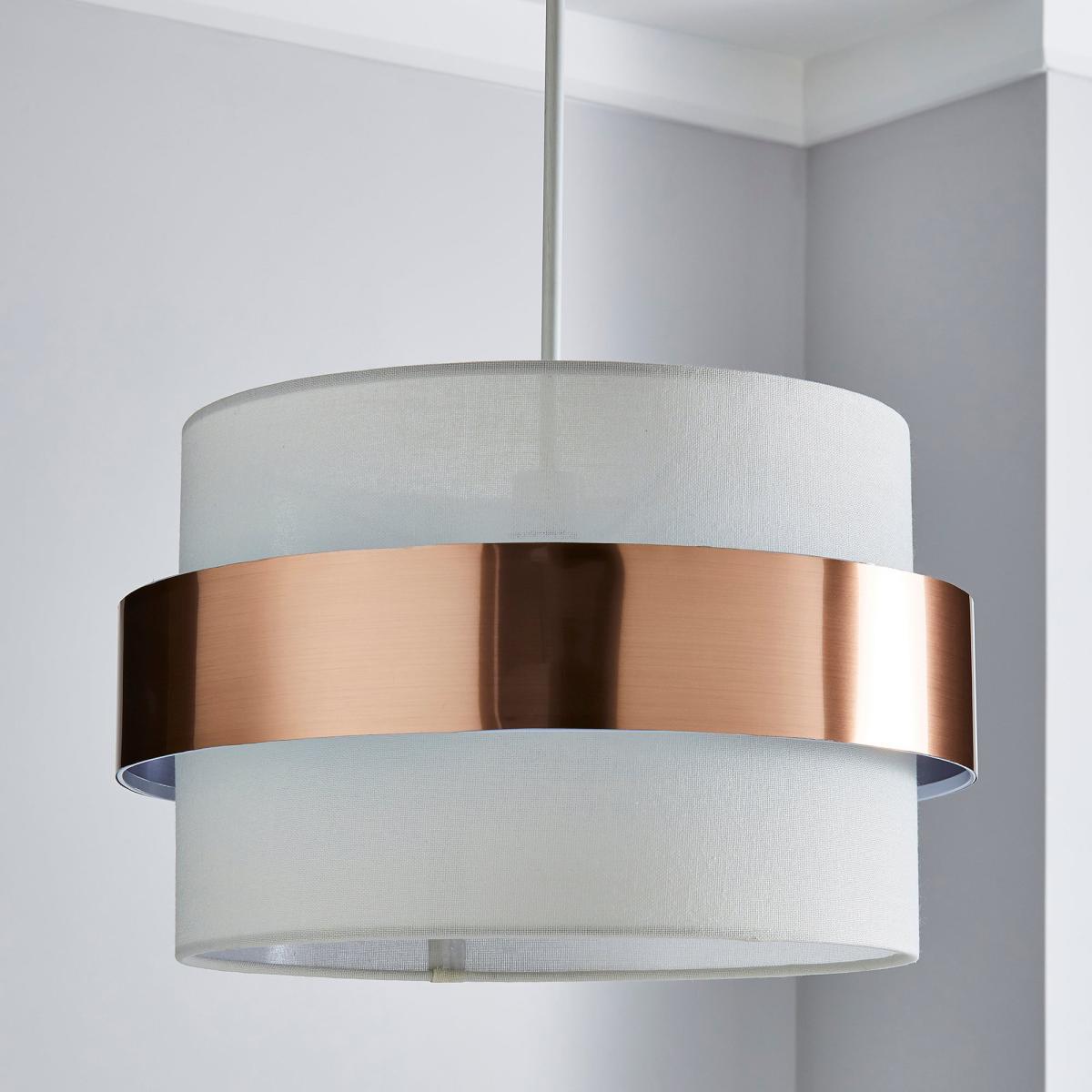 This stunning pendant is sure to add an eye-catching statement to an array of rooms. It features an ivory faux linen shade and a lovely, on trend copper finish, adding an additional modern touch to your home.