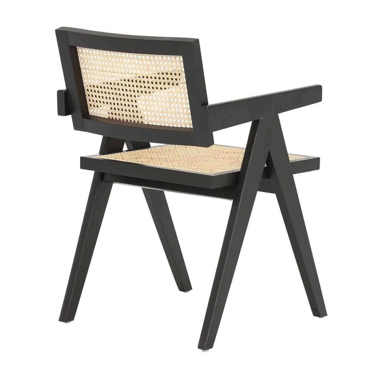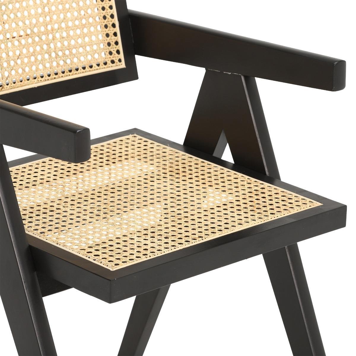 Design. With a contrasting blend of natural rattan for the seat and back rest, to the striking black solid beech for the frame, the Johan Chair makes a bold statement around any dining table. Featuring angular legs and arm rests to instil contemporary style, the Johan Dining Chair makes for a comfortable and stylish seat for breakfast, lunch and dinner.