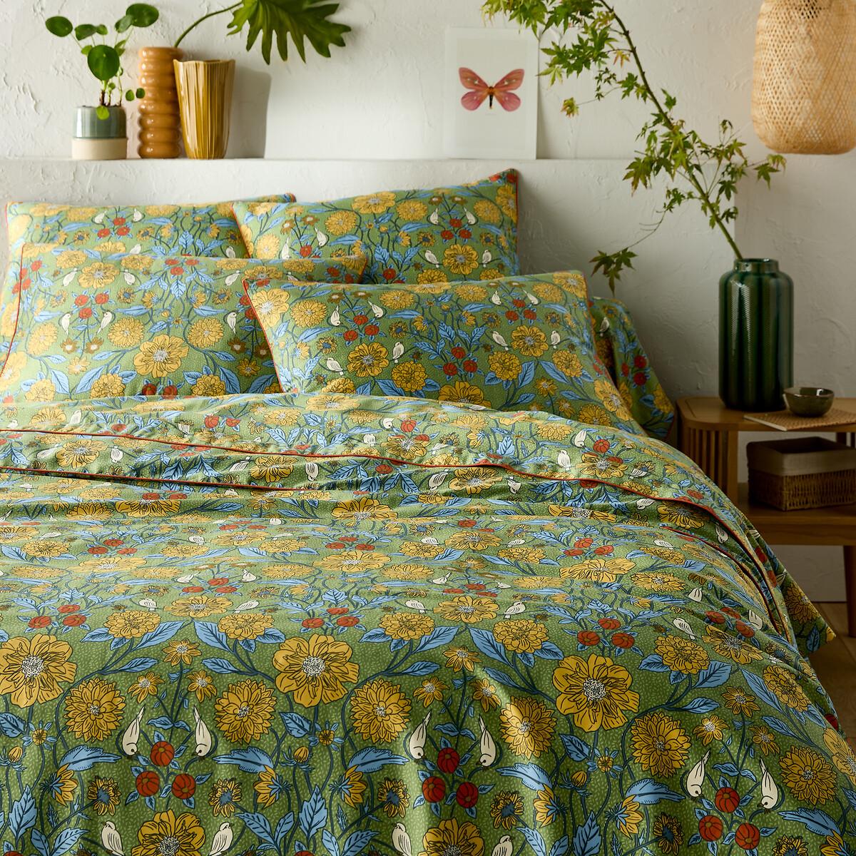 The Johanna bedding features a bouquet of flowers in multicoloured variations in cotton satin. The beauty of the floral pattern is enhanced by contrasting piping. Created by La Redoute Interiors. Cotton with an ultra tight weave, cotton satin has a silky and satin feel. Product Details • 100% cotton • Cotton satin • 300 Thread Count: The higher the thread count, the higher the quality of the weave • Straight buttoned hem Match this item with the rest of the bedding in the range for a stylish bedroom. And you can mix and match it with different colours and styles from our other bedding ranges when you want to change things up and create your own unique look. Care Advice • Machine washable at 60°C • By washing your laundry at 40°C instead of 60°C, you limit energy consumption. Sizes • 140 x 200cm: Single • 200 x 200cm: Double • 240 x 220cm: King • 260 x 240cm: Super King • OEKO-TEX® Standard 100. Standard 100 certification by OEKO-TEX® tests textile products for harmful substances via an independent, international label.