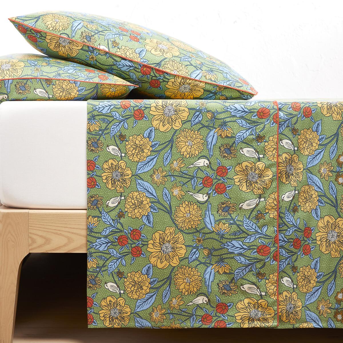 The Johanna flat sheet is made from cotton satin with a floral design. Contrasting piping enhances the vibrancy of the floral pattern's hues. Created by La Redoute Interiors. Cotton with an ultra tight weave, cotton satin has a silky and satin feel. Product Details • 100% cotton • Cotton satin • 300 Thread Count: The higher the thread count, the higher the quality of the weave. Match this item with the rest of the bedding in the range for a stylish bedroom. And you can mix and match it with different colours and styles from our other bedding ranges when you want to change things up and create your own unique look. Care Advice • Machine washable at 60°C • By washing your laundry at 40°C instead of 60°C, you limit energy consumption. Sizes • 180 x 290cm: Single • 240 x 290cm: Double • 270 x 290cm: King • OEKO-TEX® Standard 100. Standard 100 certification by OEKO-TEX® tests textile products for harmful substances via an independent, international label.