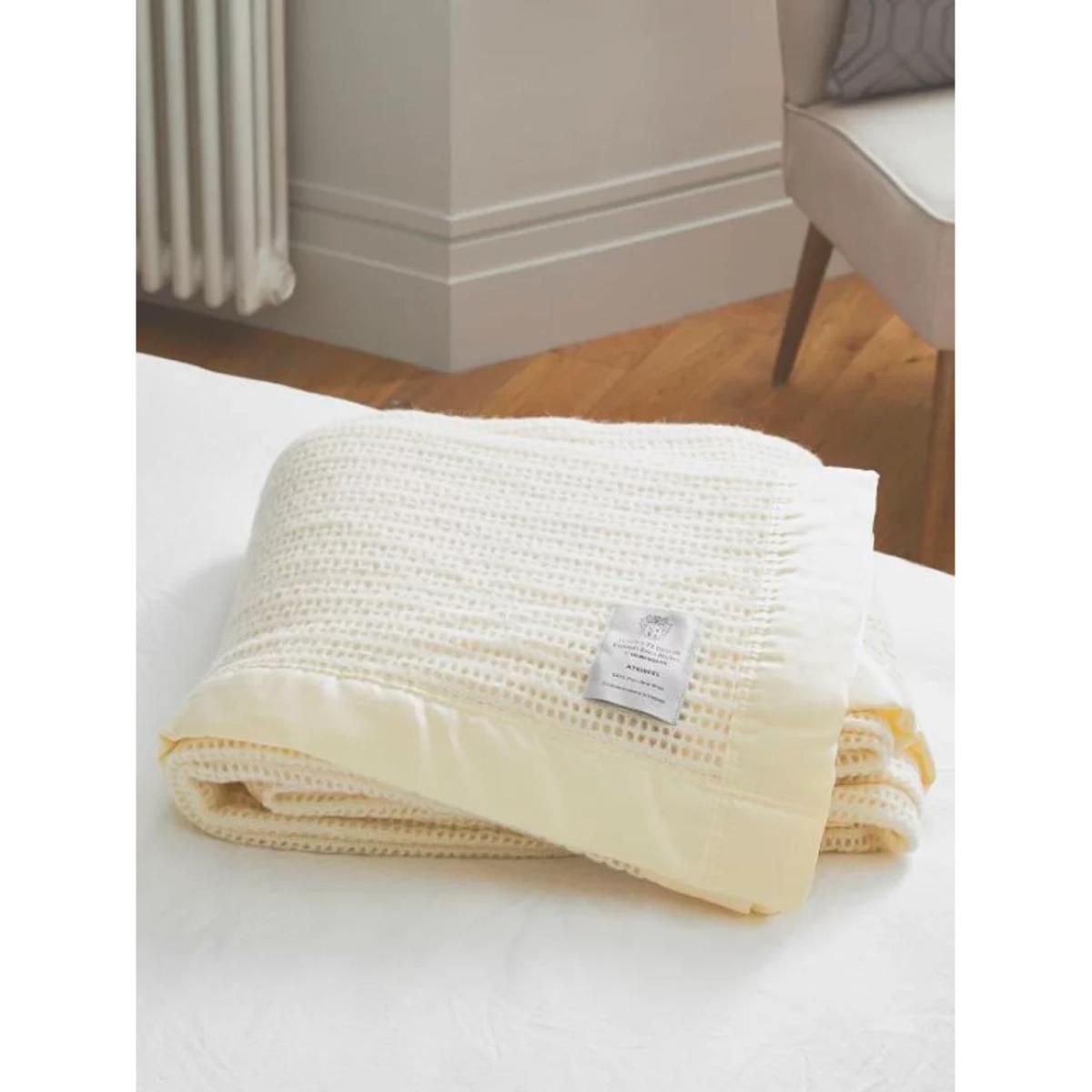 Everybody needs a little extra comfort in winter, and this baby-soft blanket will provide just that. Keep this UK-made blanket on the sofa for cosy nights in front of the telly, or on top of the duvet for additional warmth. Made of 100% wool, the warmest natural material there is, it is heat-retaining yet breathable. It also comes with a polyester satin trim to keep its shape. To ensure it stays looking and feeling as good as new, gently hand wash it when the time is right. Single, 180 x 230cm (to fit bed 90 x 190cm) Double, 230 x 230cm (to fit bed 135 x 190cm) King size, 250 x 230cm (to fit bed 150 x 200cm) Super king size, 280 x 230cm (to fit bed 180 x 200cm) John Atkinson by Hainsworth, is a luxury quality brand that believes in producing superior quality UK woollen products using traditional skills combined with modern techniques. John Atkinson has a long and impressive history of manufacturing England’s Finest Blankets. Their history started in Sowerby Bridge in 1828. With roots stretching back to the late 18th Century, Hainsworth is a family-run textiles dynasty that has been run by seven successive generations and has provided fabric to the Royal family on a number of occasions. Made in Yorkshire, each of their pieces are synonymous with quality and luxury.
